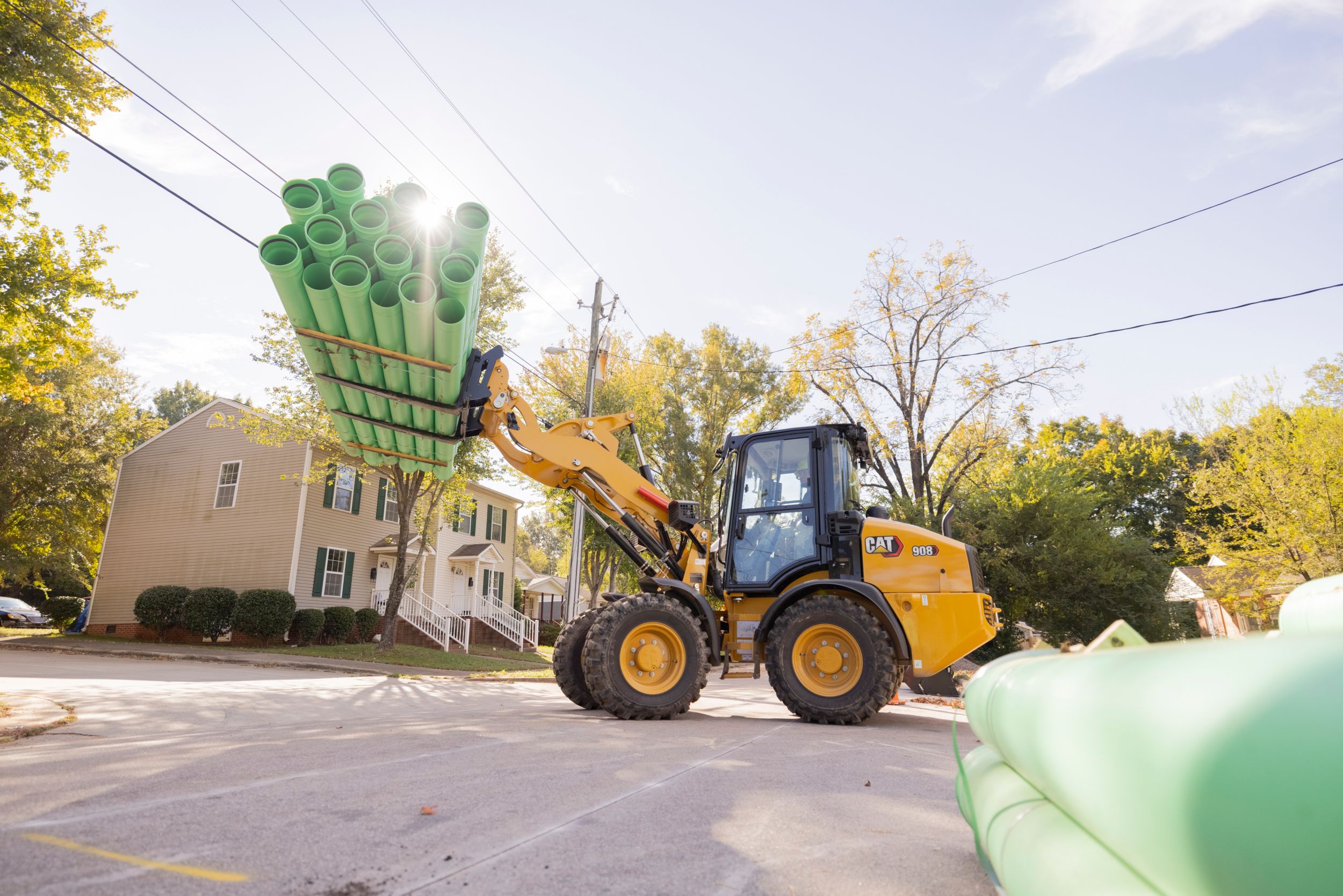 من بين اللوادر بعجل الصغيرة المعروضة، سيشاهد الحضور موديلات Cat 906 و907 و908 التي تم طرحها مؤخرًا (في تكوين الرفع العالي). وهي تتميز بمحطة مشغل بتصميم هندسي جديد، والتي تستفيد من تقنيات Caterpillar الحصرية لتحسين تجربة المشغل، وبمحرك Cat 2.8 الجديد مع تحسين الدفع ومجموعة نقل حركة للحصول على سرعات أعلى على الطريق وأداء أقوى لمجموعة نقل الحركة.