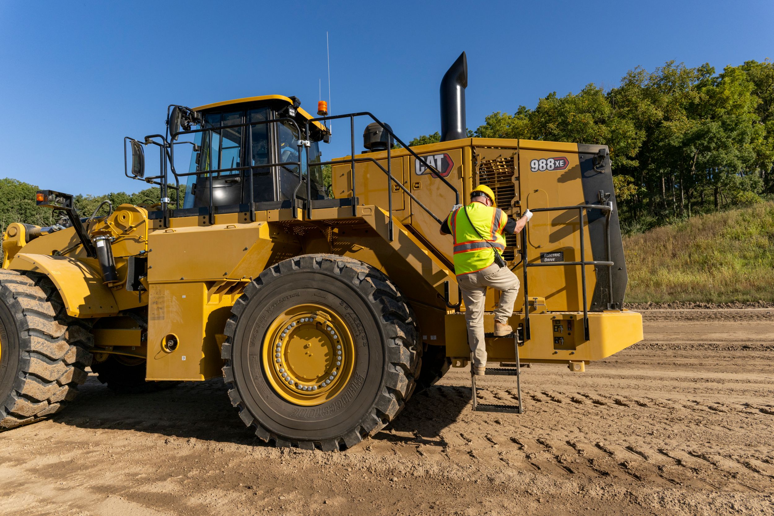 - يساعد نظام اكتشاف الأشياء الخلفية في الموديل 988K XE على تعزيز السلامة في موقع العمل والوعي بالنقاط العمياء عند التشغيل مع الرجوع للخلف.