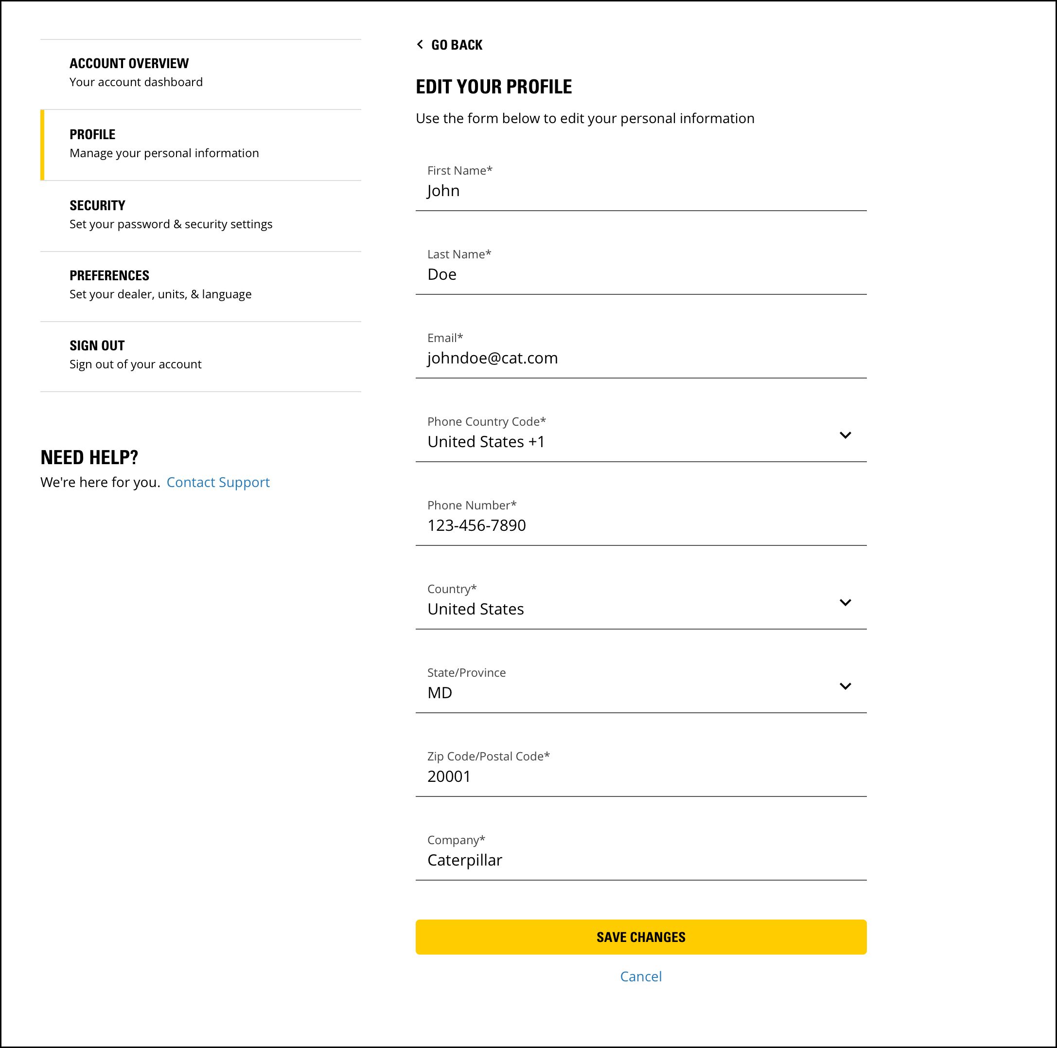وبعد حفظ معلوماتك المحدّثة، يمكنك تسجيل الخروج من حسابك والاستمرار في تصفح موقع Cat.com.
