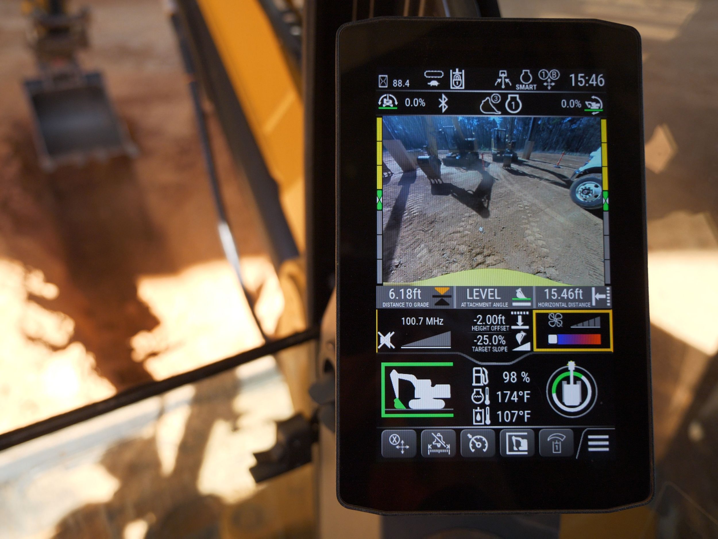„Mit dieser Neigungskontrolle kann ich das Gefälle einfach in meiner Kabine einstellen und ohne einen Mann mit einer Nivellierlatte hinter der Maschine baggern“, sagt Brian Norge Jr. von Benmoor Construction.