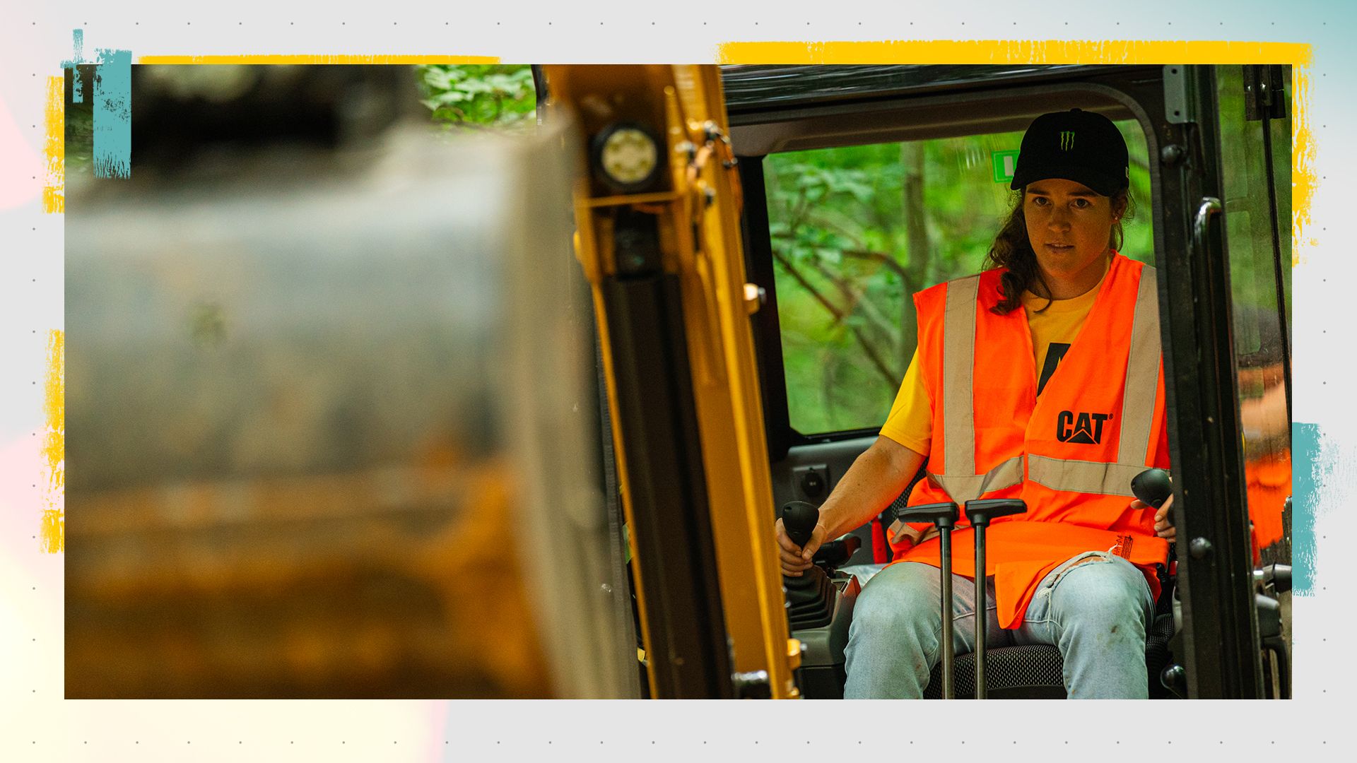 Michael hatte die Beweglichkeit, Vielseitigkeit und Kraft, um Teile von Camilles Piste umzugestalten und ihre Vision zum Leben zu erwecken. Gemeinsam zerkleinerten sie nicht nur Steine – zusätzlich zur Säuberung von Bereichen der Piste gestalteten sie den Step-up (einen Sprung, bei dem die Landung höher ist als der Absprungpunkt) neu, um ihn etwas schneller zu machen, und fügten eine große Kurve zu einem brandneuen Sprung hinzu.