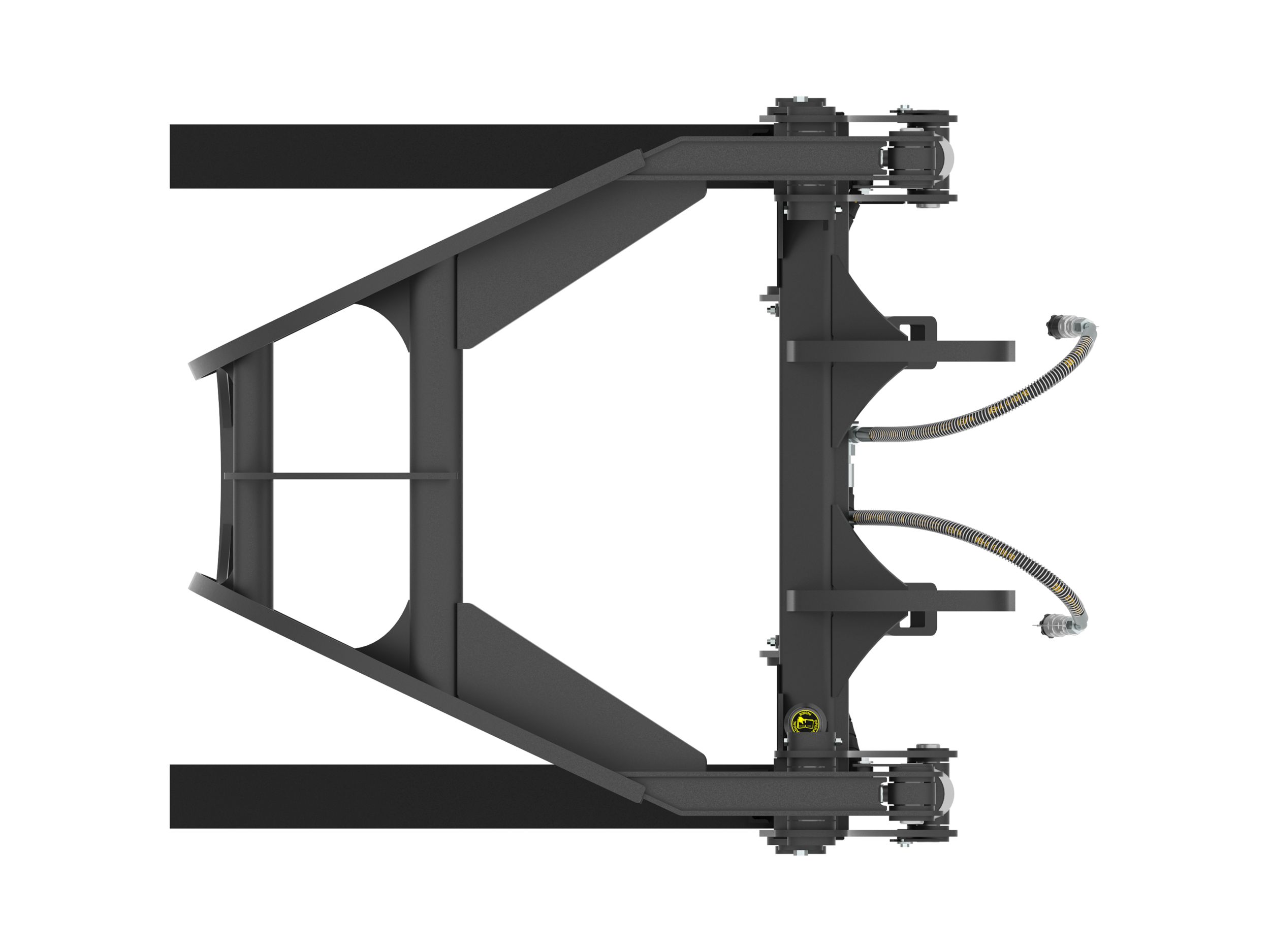 Die flachen Gabelzinken im 90-Grad-Winkel ermöglichen den Transport von Paletten mit Schnittholz und anderen Gegenständen sowie von losen Stämmen.
