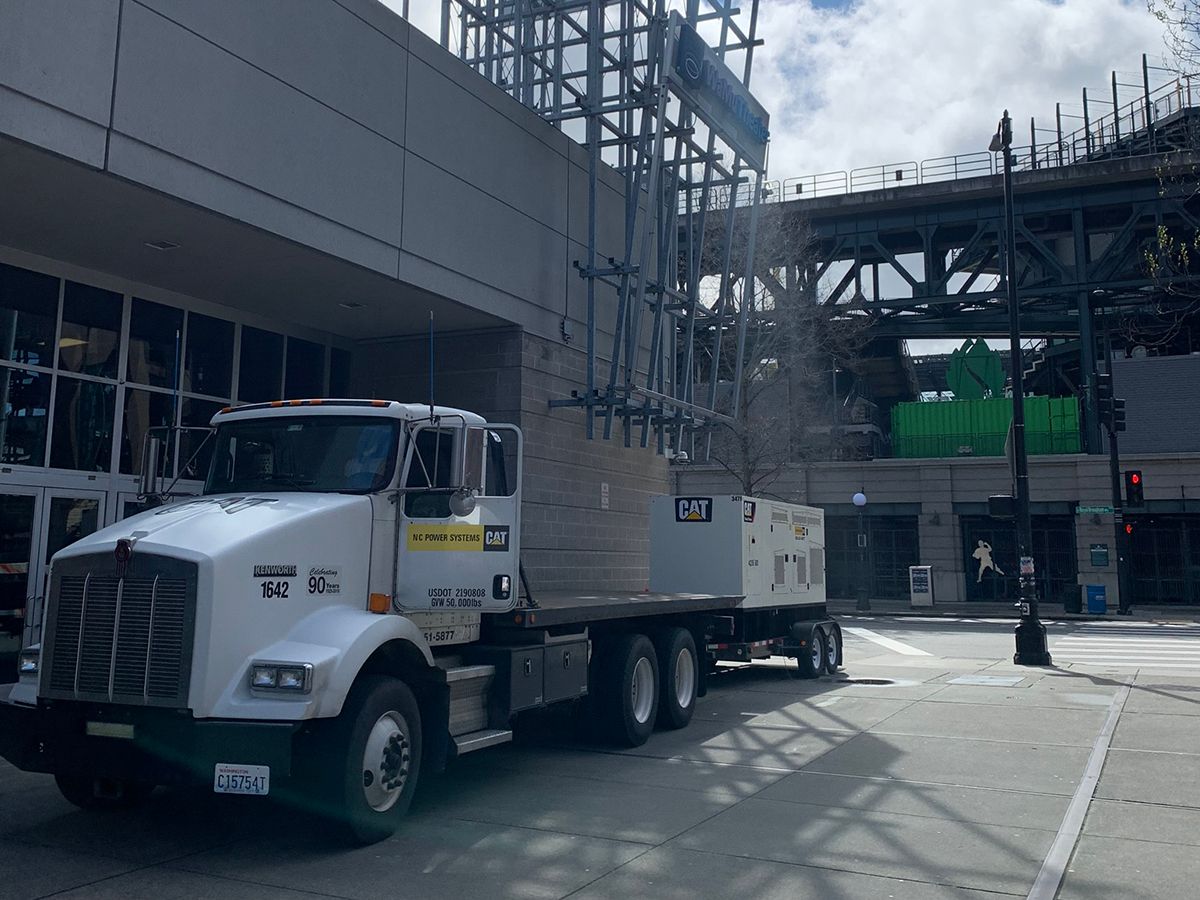 At Camp Murray—which serves as home to the Washington National Guard south of Tacoma—Cat® dealer N C Power Systems supplied an 80 kW rental generator that supplies power to four small portable structures that are being used to sterilize personal protective equipment (PPE) to help contain the outbreak in western Washington state and beyond. Hospitals will send N95 masks to Camp Murray.