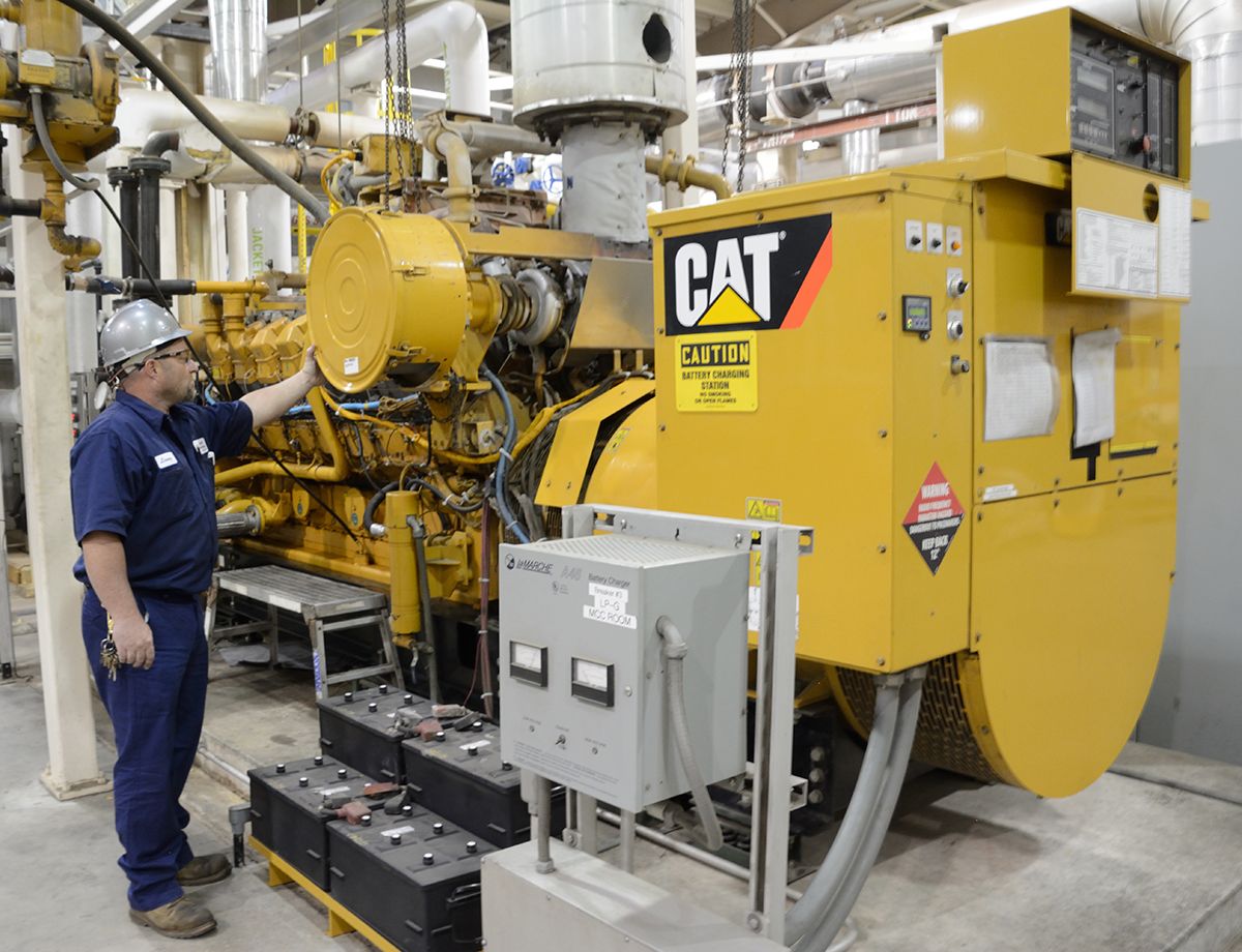 Three Cat G3516 generator sets produce 2.4 MW of power. A fourth serves as standby power for scheduled maintenance.