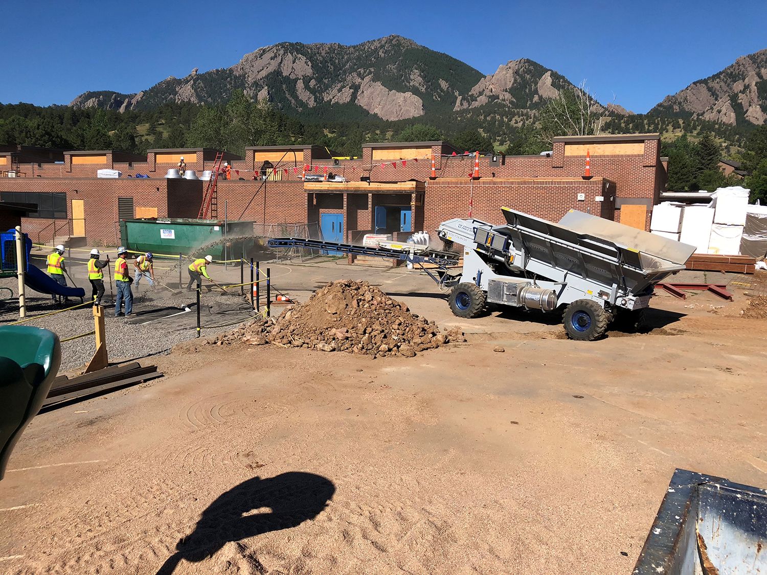 Today, the company is still family owned and operated. They produce an array of Stone Slinger equipment for precise, high-speed placement of gravel, stone, sand, soil, compost and mulch. Its latest innovative offering is the Stone Slinger OS7 machine. Unlike traditional Stone Slinger units, which are truck-mounted, the OS7 is a self-propelled all-terrain system designed to stay on a jobsite and place hundreds of tons of material until a project is done. The machine is loaded from onsite stockpiles so that it can place material continuously throughout each workday. The OS7 also has increased hydraulic capabilities compared to truck-mounted Stone Slinger units – it will throw stone up to 130 feet in distance, and an average offload of four tons per minute.