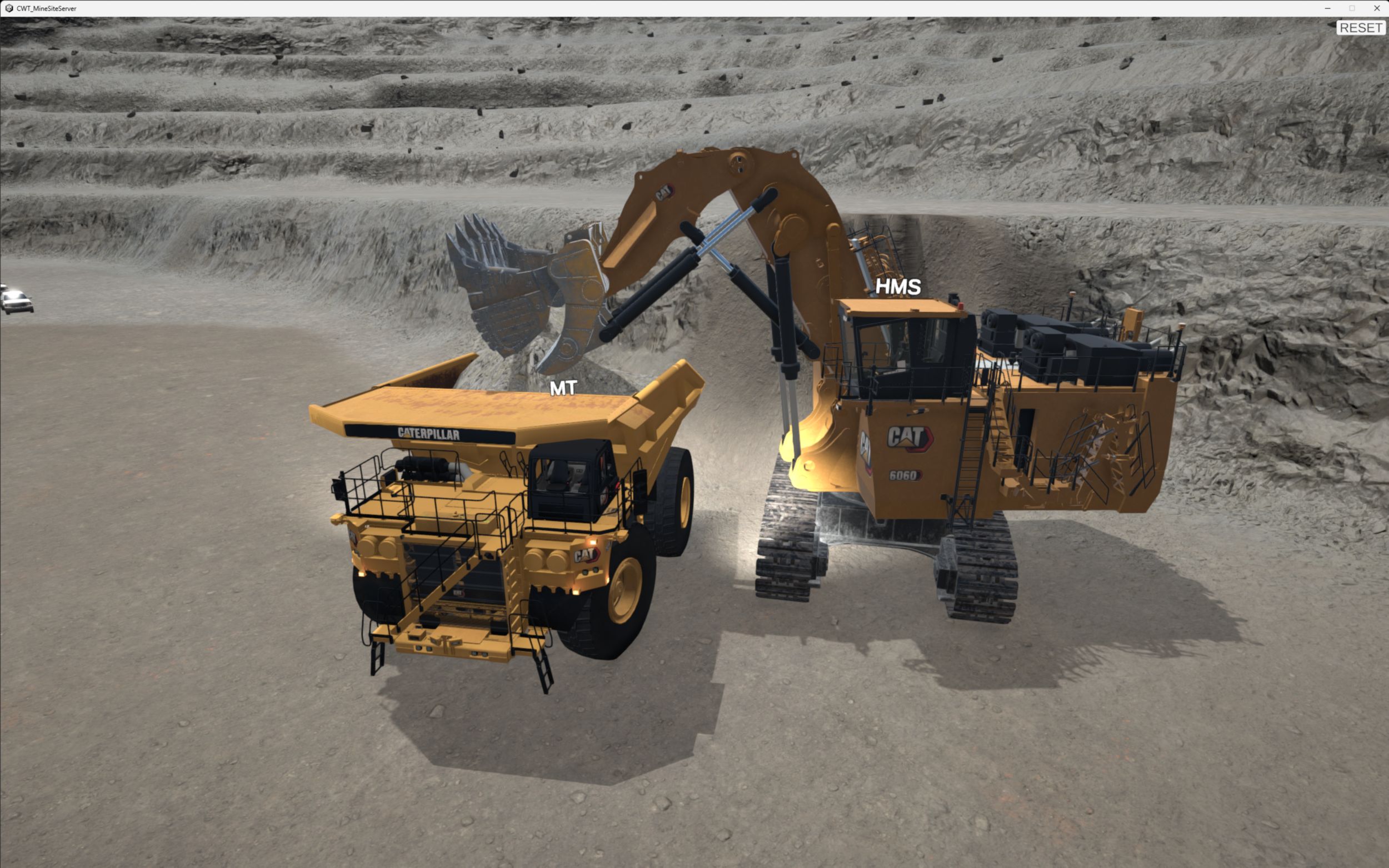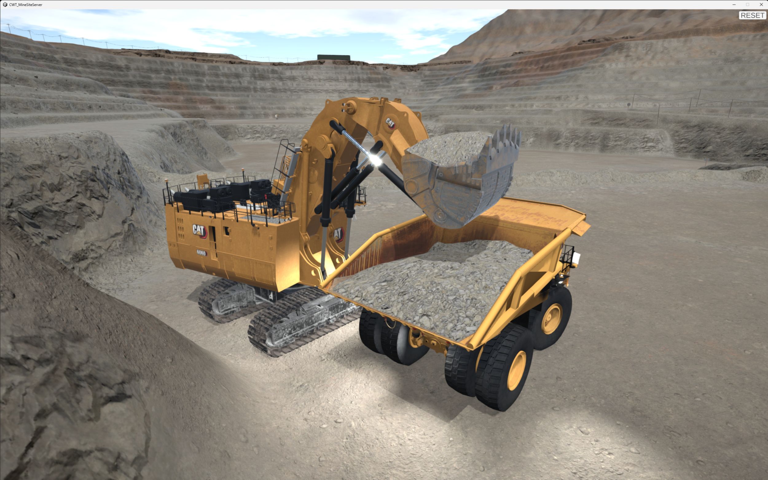 The new program connects a Cat 6060 hydraulic mining shovel and 793 mining truck in a collaborative working environment, adding a level of human interaction and a more real-life feel for the load/haul cycle, without the fear of causing harm to themselves, others or the equipment.