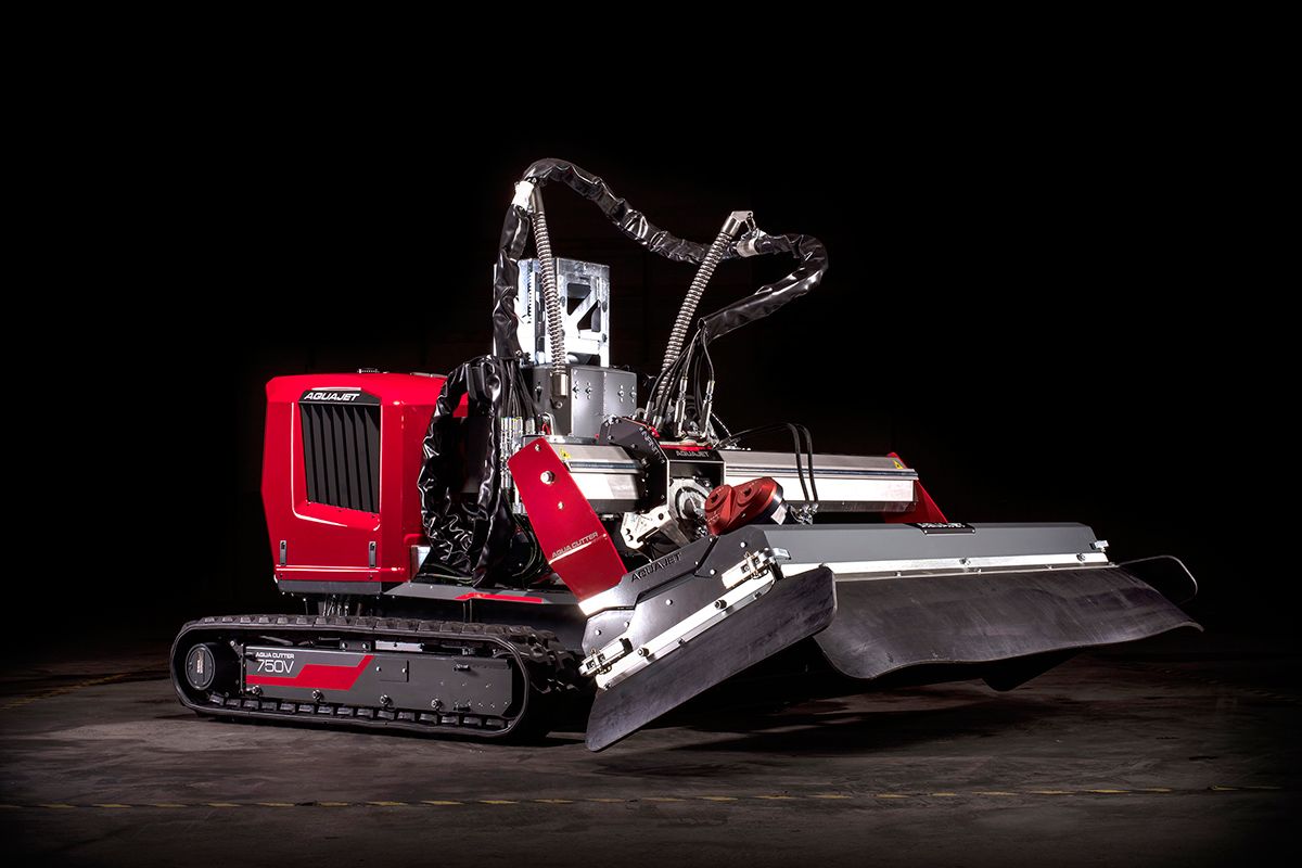 Aquajet hydrodemolition equipment makes it safer to perform concrete infrastructure renovations. Aqua Cutter robots maintain a preset distance between the nozzle and surface, ensuring no loss of demolition power. Aqua Power Pack high-pressure pump systems like the Aqua Power Pack 700 provide hydrodemolition power for robots. Partial depth concrete removal is precise, preserving rebar and the remaining structure. The method also helps avoid microcracks. Repairs can extend the life of concrete structures by up to three times.