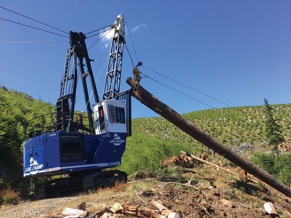 T-MAR’s Log Champ brand of swing yarders is popular in steep-slope logging, where mountainous, often rocky terrain makes it impossible to move felled trees to the roadside using traditional equipment. Swing yarders feature a winch and a series of cables attached to a grapple, which picks up the logs and “yards” them more than a thousand feet to a safe location where they can be loaded onto trucks for transport.