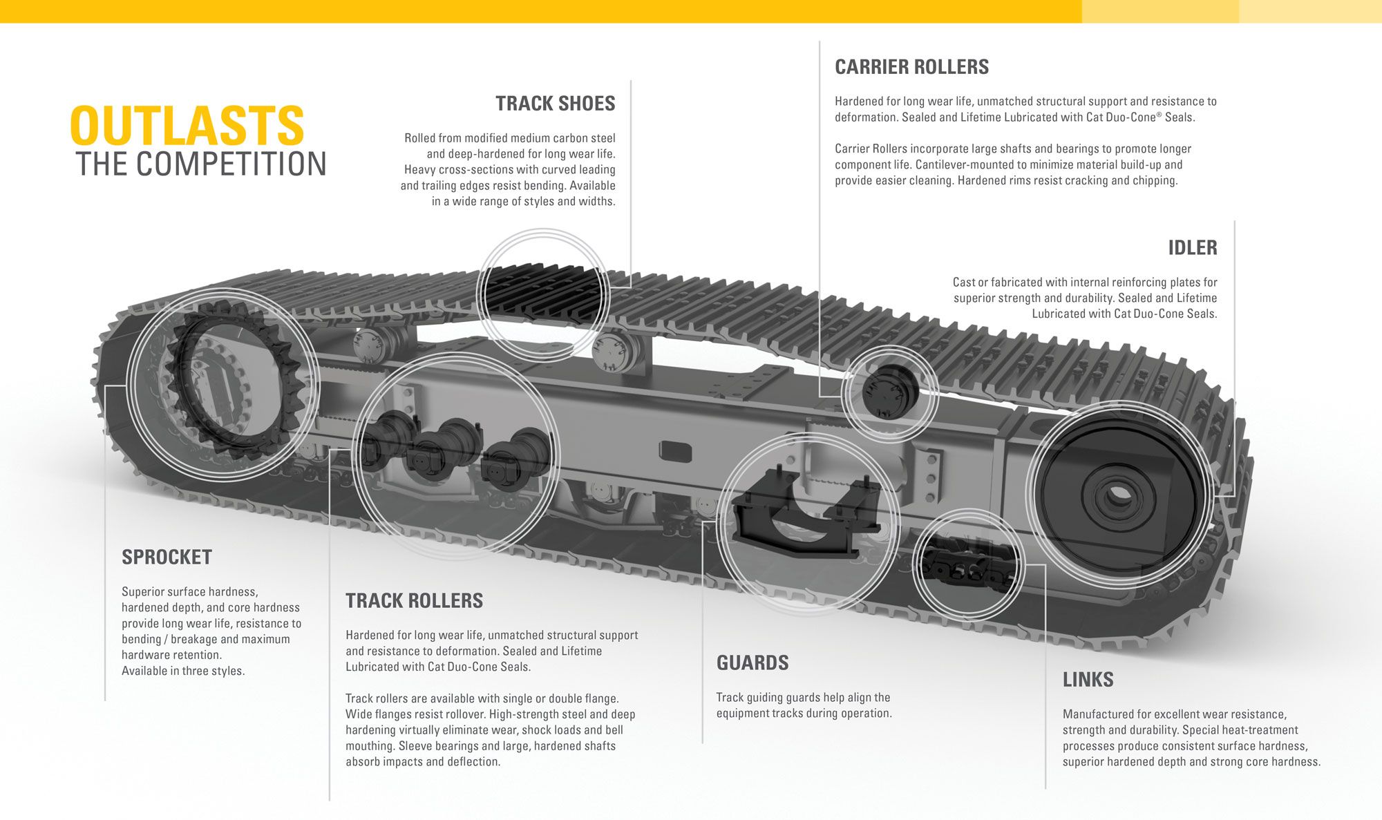 Because Caterpillar manufactures its own undercarriage, every component meets strict specifications and quality standards that no competitor can match. Durable, reliable components result in lower operating costs.