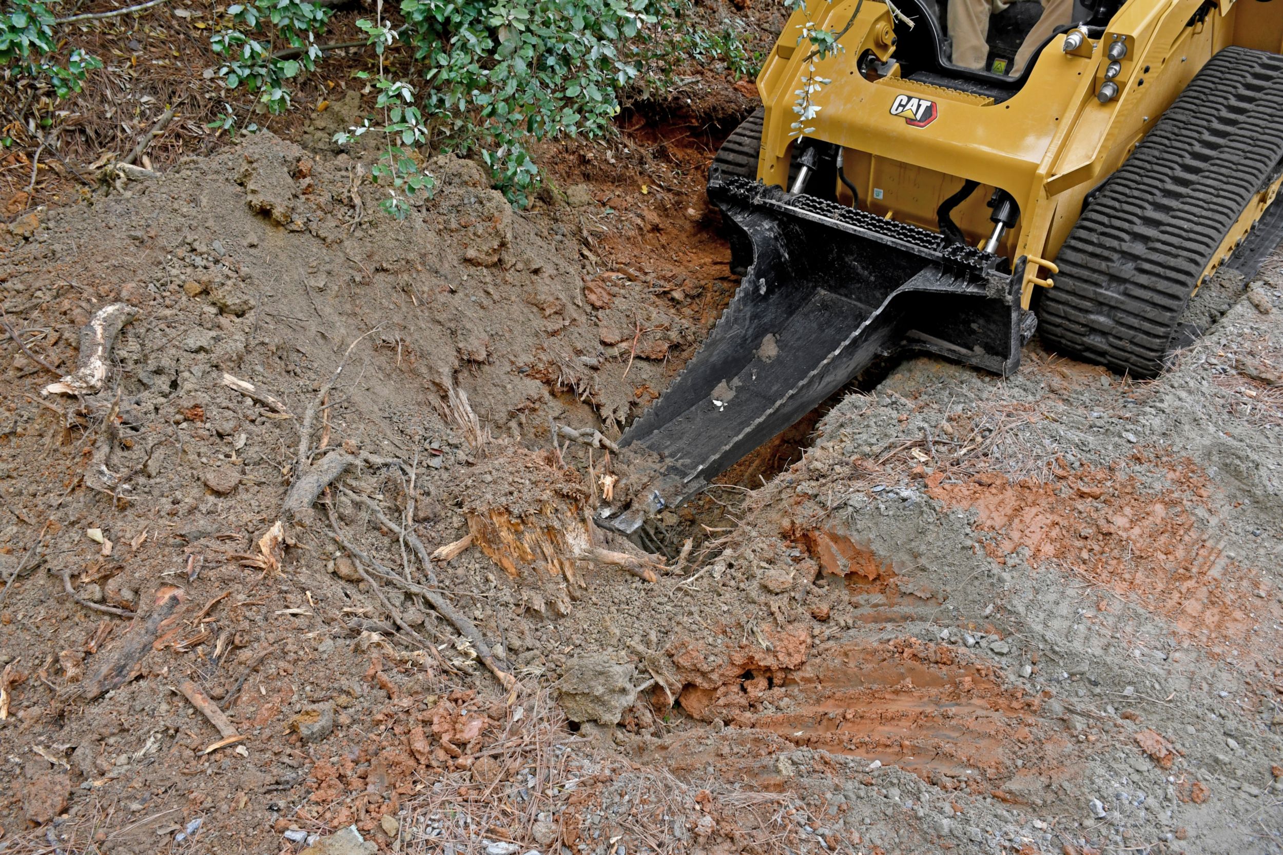 The Cat tree scoop efficiently handles shrubs and small trees at nursery sites and in landscaping applications. Capable of digging and scooping up to a 36-in (901-mm) diameter, the scoop easily transports or transplants trees and other materials. The spade profile easily digs into the ground, and a flattened tip cuts roots for easy tree removal. Welded gussets and thick plates lend to its rugged design and increased durability.