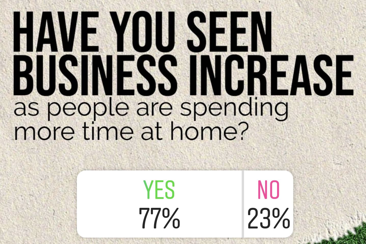 77% of those who responded to our Instagram poll said that they’ve seen an increase in business as a direct result of people spending more time at home during the pandemic.