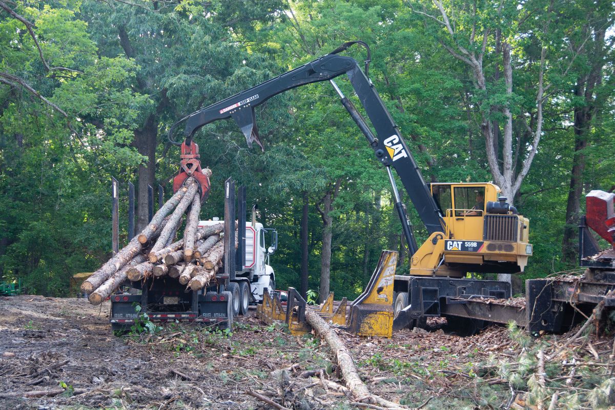 At land owned by the Army Corp of Engineers and managed by the North Carolina Game Land Commission, the crew select harvested 71 acres, as well as clear-cutting 25 acres. The tree harvest helps improve wildlife habitat. “They want the trees far enough apart that the sun can touch the soil and have greenery come up,” Williams says. “We don’t harvest anything that produces a nut, no hickory or white oak. We try to cut out all the soft hardwood because it is so invasive. The sweet gums will take over.”