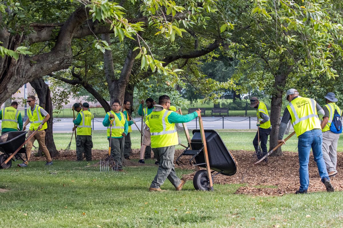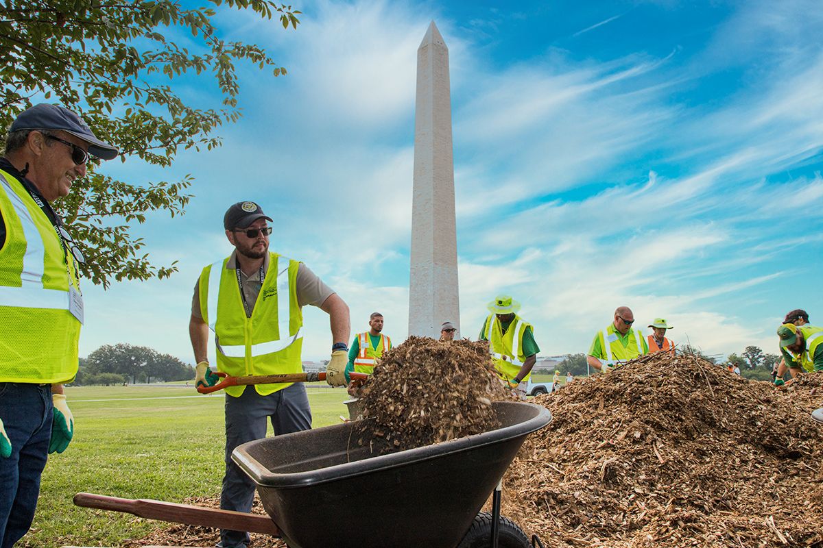 Projects completed at Arlington National Cemetery this July included lightning protection for nine historic oak trees, turf improvements, landscape lighting installations, hardscape repairs, and irrigation repairs and upgrades. The team also worked with the National Park Service to identify projects at The National Mall, such as preservation of the cherry trees near the Washington Monument.
