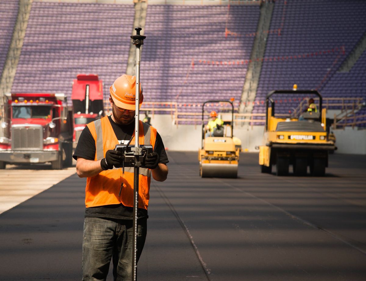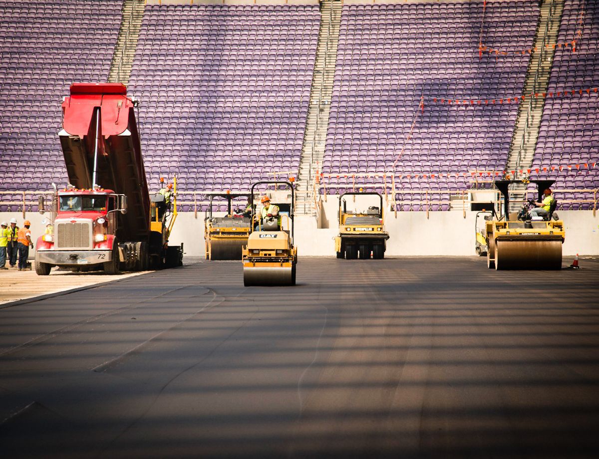 Park Construction, the Minneapolis-based asphalt subcontractor at the new home of the Minnesota Vikings, placed an asphalt mat that varied less than 1/8-inch over a 10-foot by 10-foot area the entire length and width of the field.