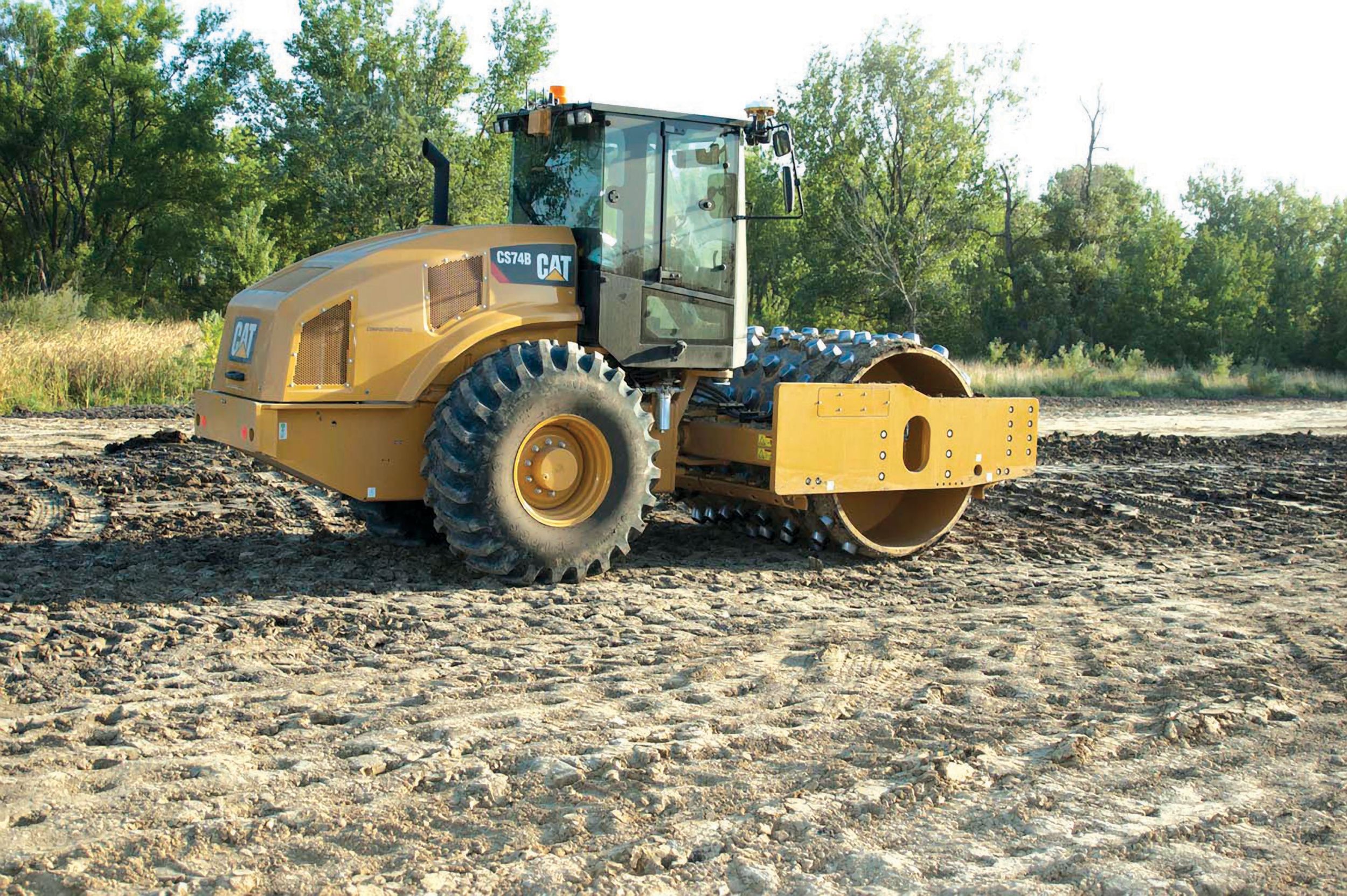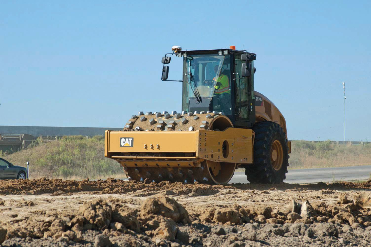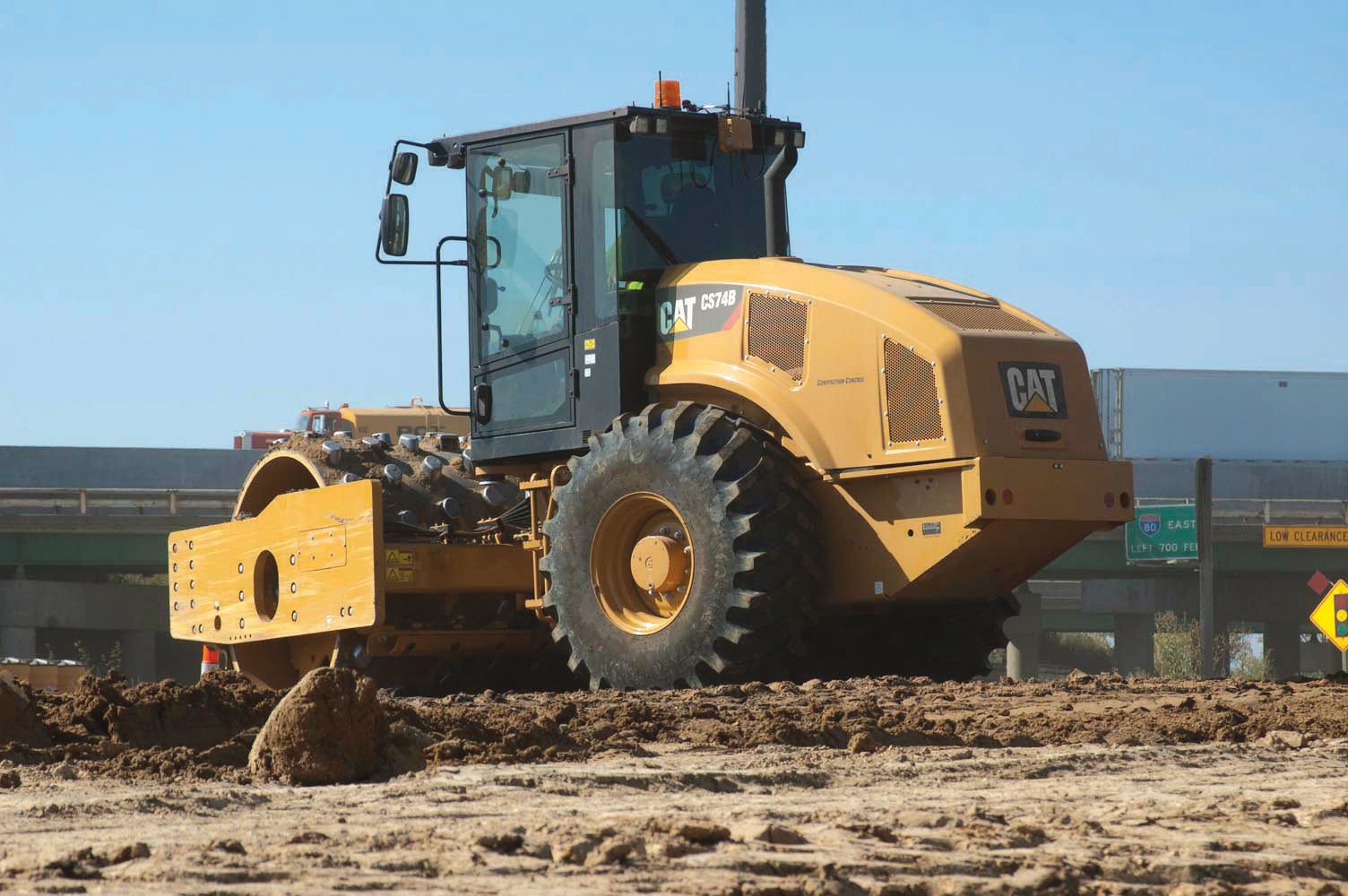 Operator Eddy Butler went to work on the ramp, viewing real-time results on an easy-to-use monitor display on the Cat® CS74B Soil Compactor, outfitted with Cat Compaction Control, an IC technology, including MDP.