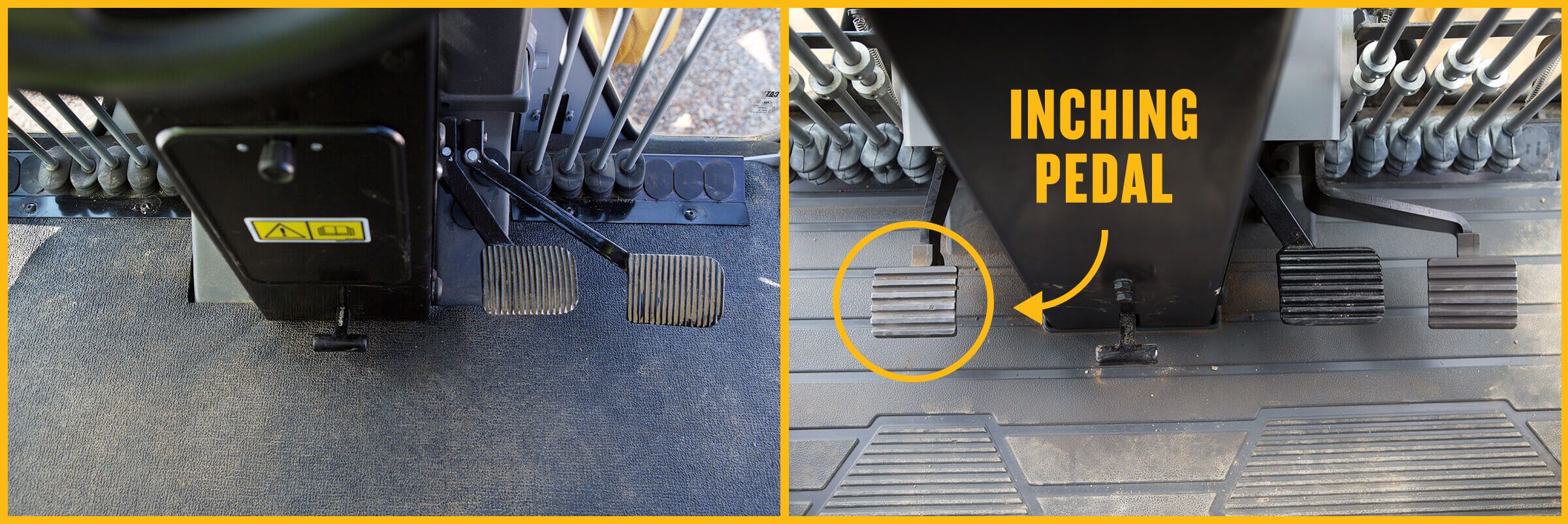 Caterpillar engineers call the inching pedal by another name. To them, it’s the “transmission modulator control.” But whatever you call it, its function is clear: Depressing the pedal disengages power to the grader’s wheels.