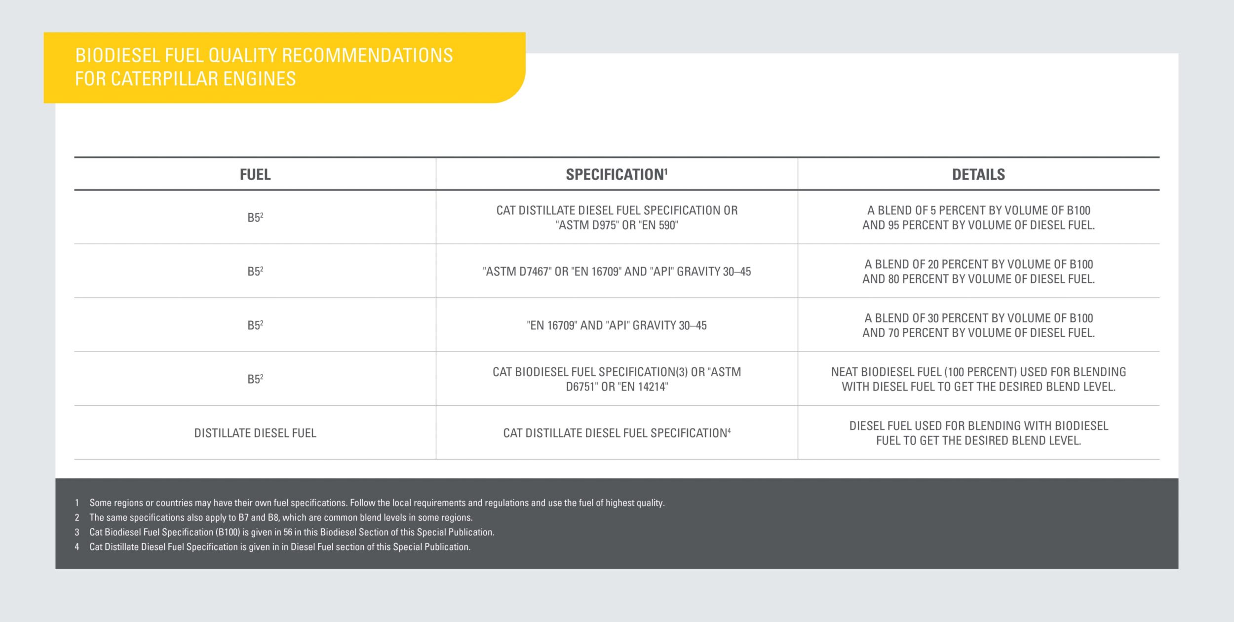 Additionally, Caterpillar recommends biodiesel fuel must meet these standards.