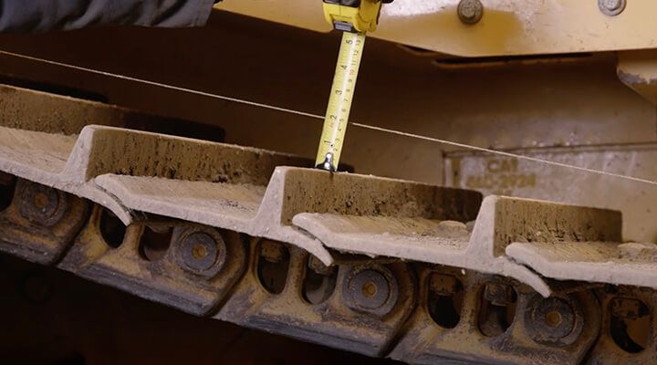 Lift one track 50 mm (2 inches) off the ground, and measure the sag from the middle roller.
