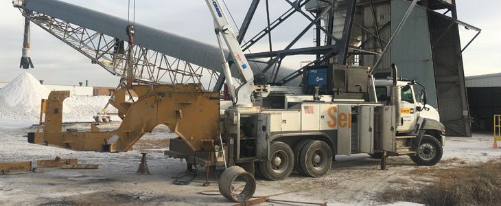 Finally, the machine arrived on the surface of the Sperry mine. On a cold November day, with the temperature dipping below -2 degrees F (-19 C), the technician team got to work. Joining Wolf were two Sperry employees who also worked on the R1600 mine transfers: mine maintenance supervisor Doug Edle and technician A.J. Kuisle.