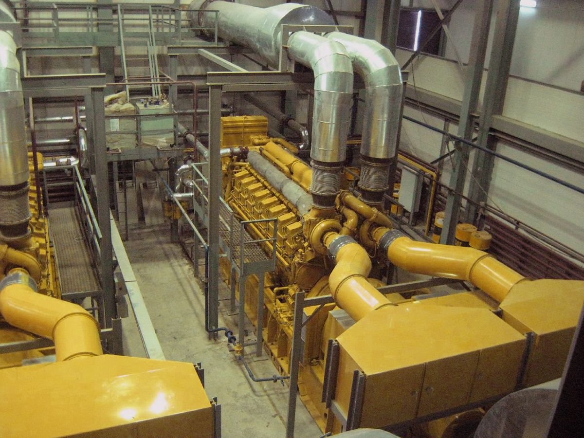 The Cat 3616 generator sets feature fourcycle, V-type, 16-cylinder engines with direct fuel injection and turbochargers. The fuel system includes a fuel pump, pump-injector units and double fuel filters. The unit has a differentiated cooling system with an expansion tank, which is mandatory for heavy-oil engines. The cooling circuit of the engine’s jacket and the cooling circuits of turbocharged air and oil are separate and maintain temperatures of 90°C (194°F) and 32°C (90°F), respectively. Each generator set is equipped with an exhaust heat recovery system and a module of heat exchangers.