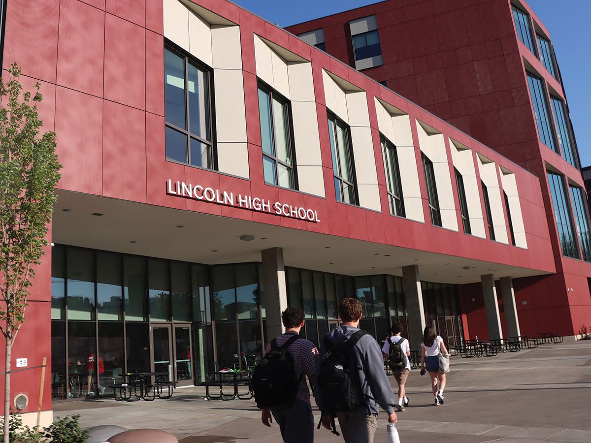The State of Oregon requires all buildings that utilize public funds to dedicate 1.5% of the construction budget to alternative energy. The new Lincoln High campus includes a host of green features that reduce the school’s impact on the environment. The project is LEED Gold certified and includes a green roof to reduce solar heat gain and a photovoltaic (PV) solar array that generates almost 300 kW of power. The building makes extensive use of natural lighting and utilizes radiant floor heating in the main commons for high efficiency heating.
