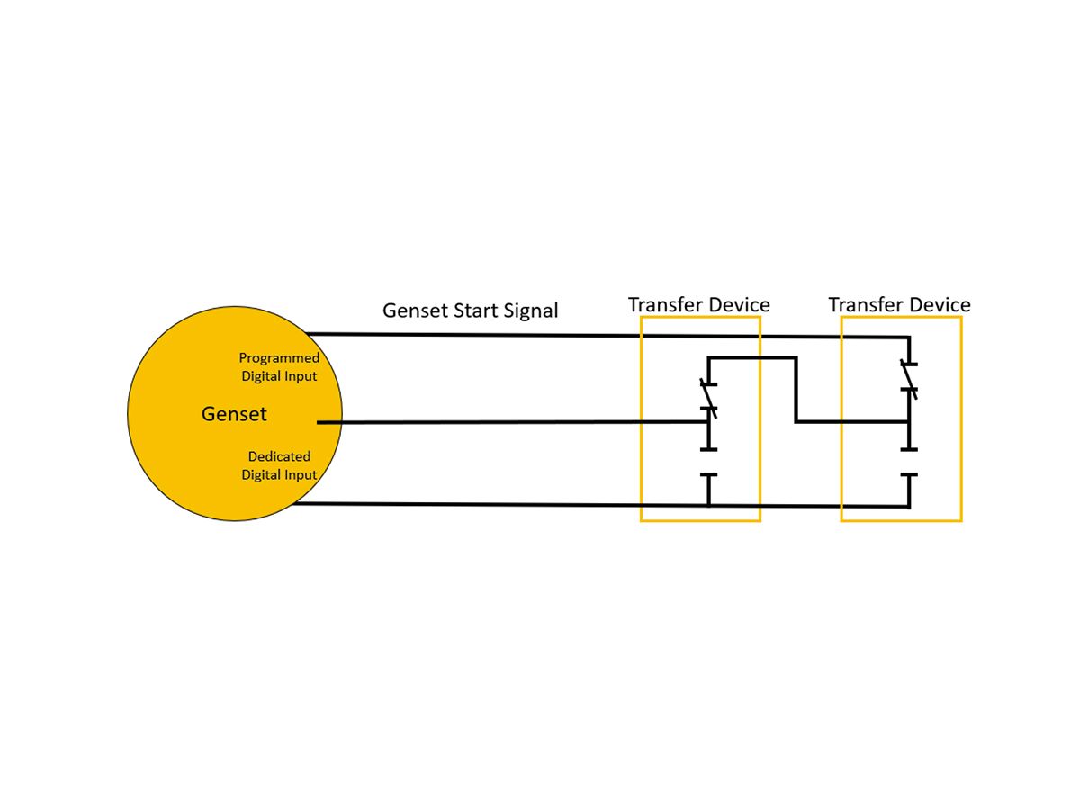 An alternative to this process would be to use a normally open contact, which would be energized when the utility is present to hold the contact closed. When the utility fails and the power is removed from the contact, it will return to the open state, which the generator set controls will recognize as a request for start. The risk with this process is that if the connection between the Transfer Device and generator set were to have a short, the generator set will not recognize the opening of the contact and will fail to start.