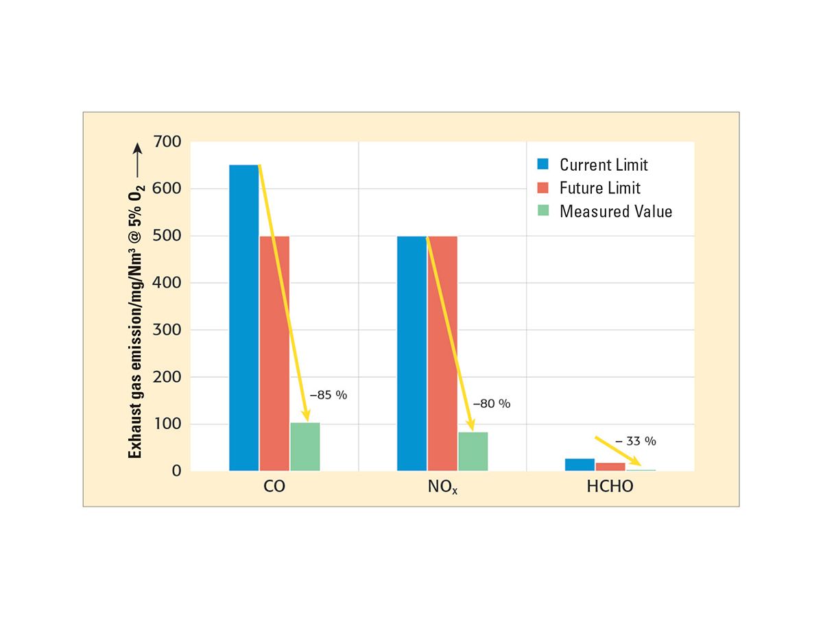 Formaldehyde is another emission that engineers have been very successful in reducing. According to EU guideline CLP (EU Regulation No. 1272/2008), formaldehyde was classified as a carcinogen, whereupon the limit values for that pollutant were lowered from the levels established in 2016, based on the recommendation of the LAI (Federal/Länder Association for Pollution Control) and adopted in the new BImSchV.
