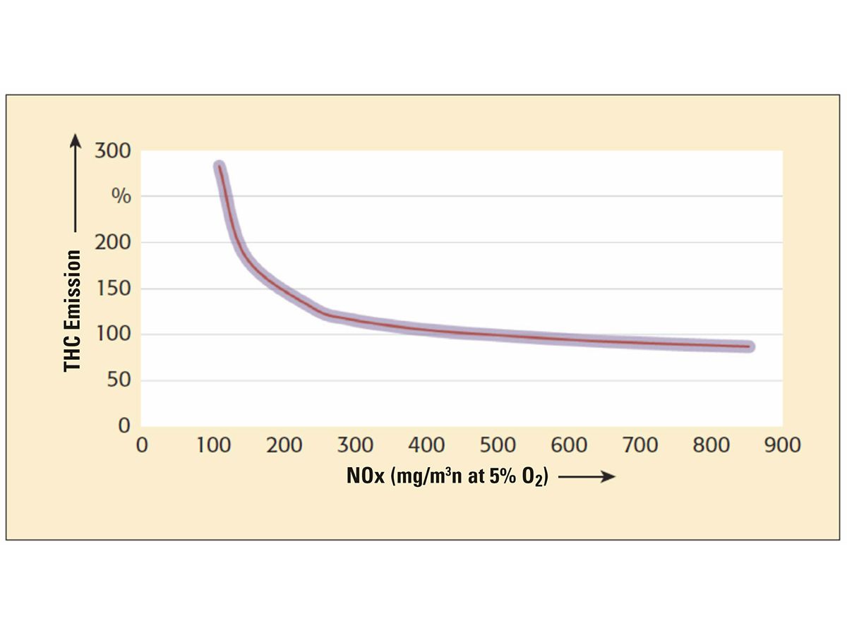 At the same time, engine raw emissions of formaldehyde and THC, which consists essentially of methane, are reduced by up to 20 percent, depending on engine size. The technology also provides an advantage in terms of wear on components including spark plugs and valves. Therefore it can be said that SCR technology for gas engines has matured and can make a contribution to environmental protection while enabling economical plant operation. Although in the first step the BImSchV for NOx specifies 250 mg/mn3 as the limit, analogous to the MCPD, SCR technology should be used to reach this limit, since otherwise THC values increase significantly (Figure 3).