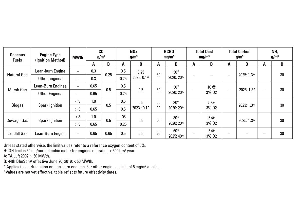 A variety of gas engine technologies will enable plants to meet these emission limits reliably and cost-effectively.