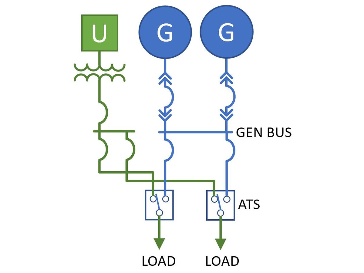 Is a Generator Bus Required? Generator buses connect all the generators together (Figures 1 and 2). This bus is then connected to load buses via tie breakers. Separate generator buses have the advantage of allowing generator-paralleling testing without disturbing the facility’s load. Plus, this seems to be the configuration with which generator suppliers are most accustomed. This allows the selection of standard designs that minimize the custom engineering required. However, the generator bus and corresponding required tie breaker(s) will increase cost and space requirements.