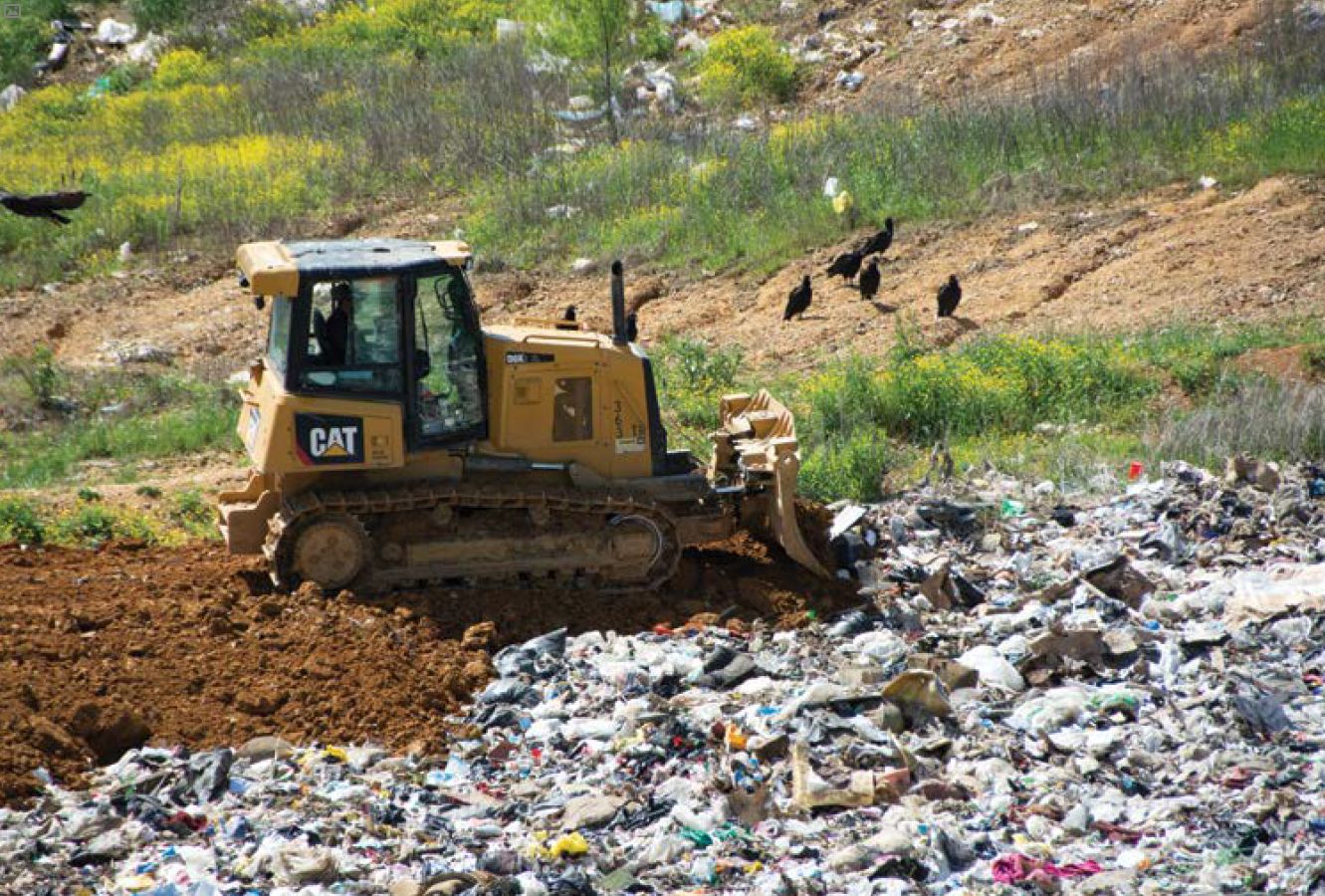 Lee uses the 836K to doze and compact the waste in three-foot layers. At day’s end, the 836K and/or the Cat 963K Waste Handlers spread six inches of cover material.