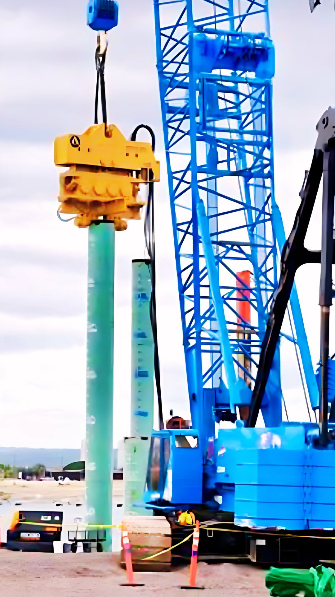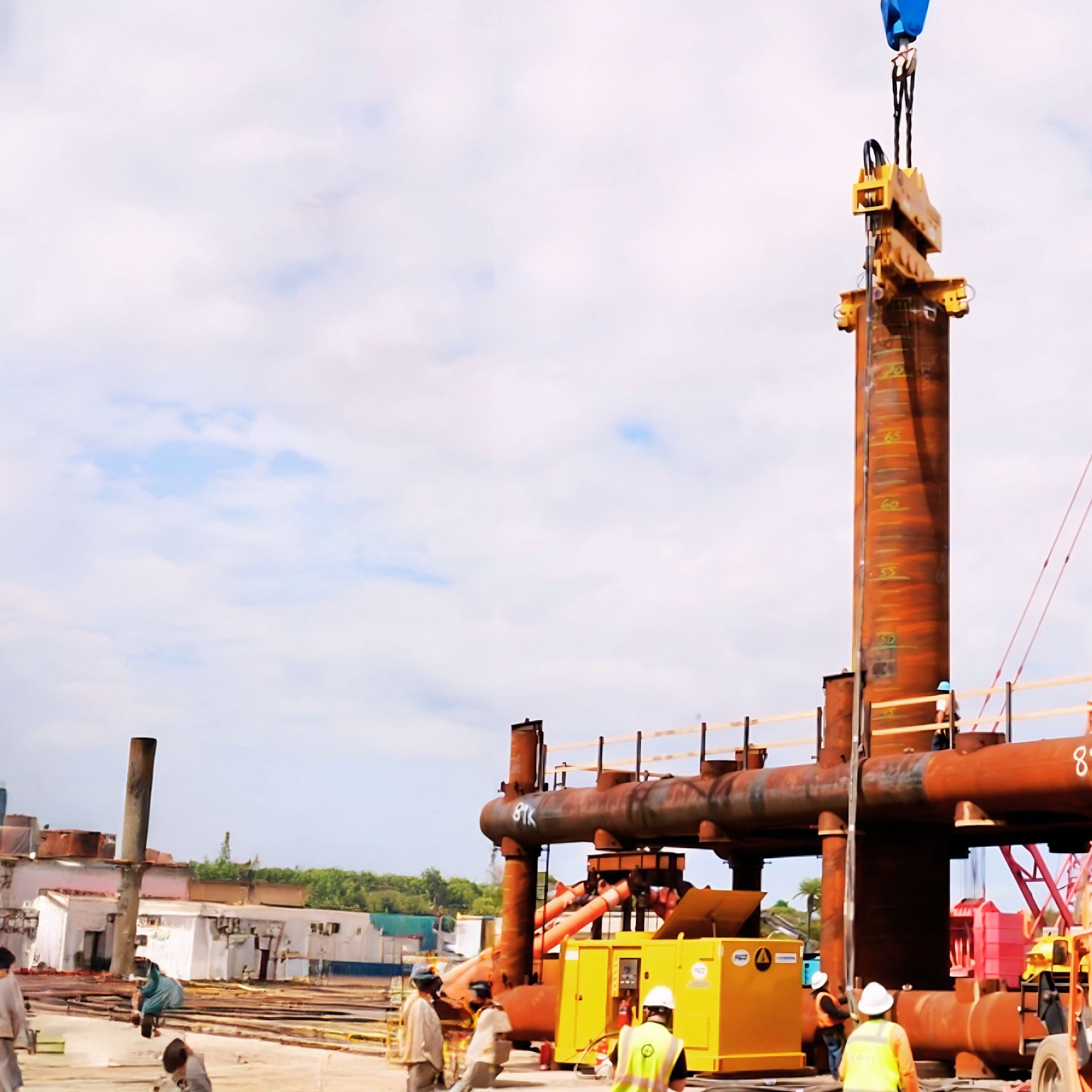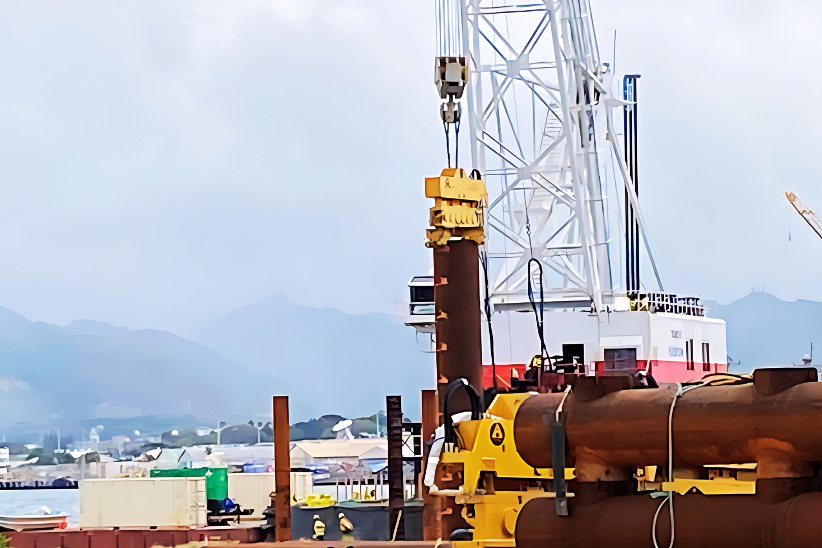 The Antaeus Model 600 pile driver, nicknamed “Zeus,” is one of the largest vibratory pile drivers in the world. There’s a broad range of applications for Zeus, from setting foundations for large-scale developments to upgrading shorelines for reclaimed land. The machine is so large that it is usually deployed with a crane.