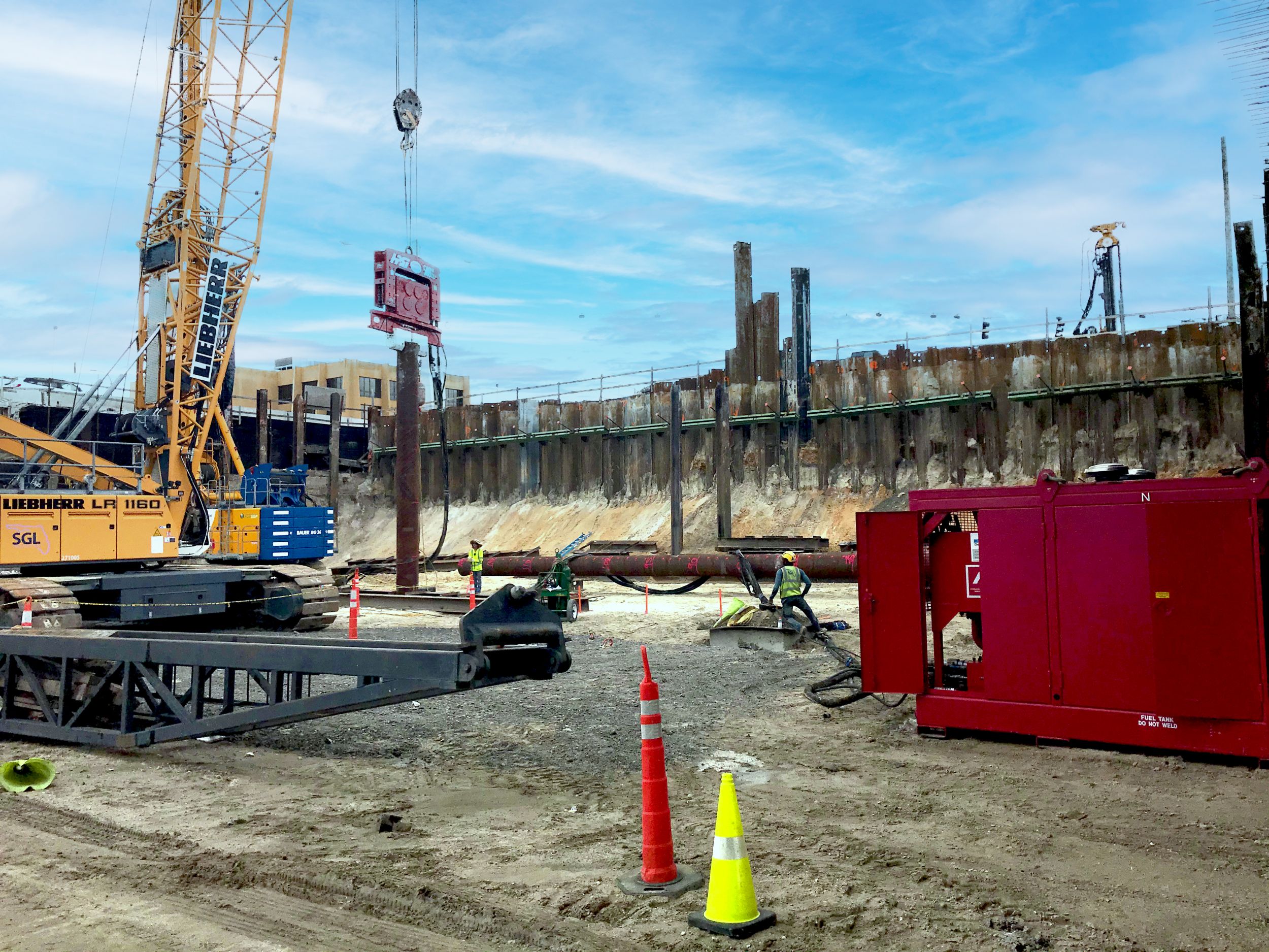 Across the United States, GeoQuip Power Systems/HPSI vibratory hammers do what only a select group of specialized equipment can: These crane-suspended machines drive or extract massive sheet piles, king piles and pipe piles for heavy civil and marine projects. The vibration liquified the soil to allow colossal piles in excess of 150 feet to easily plunge deep into the ground, creating deep and sturdy foundations for bridges, tunnels and other infrastructure.