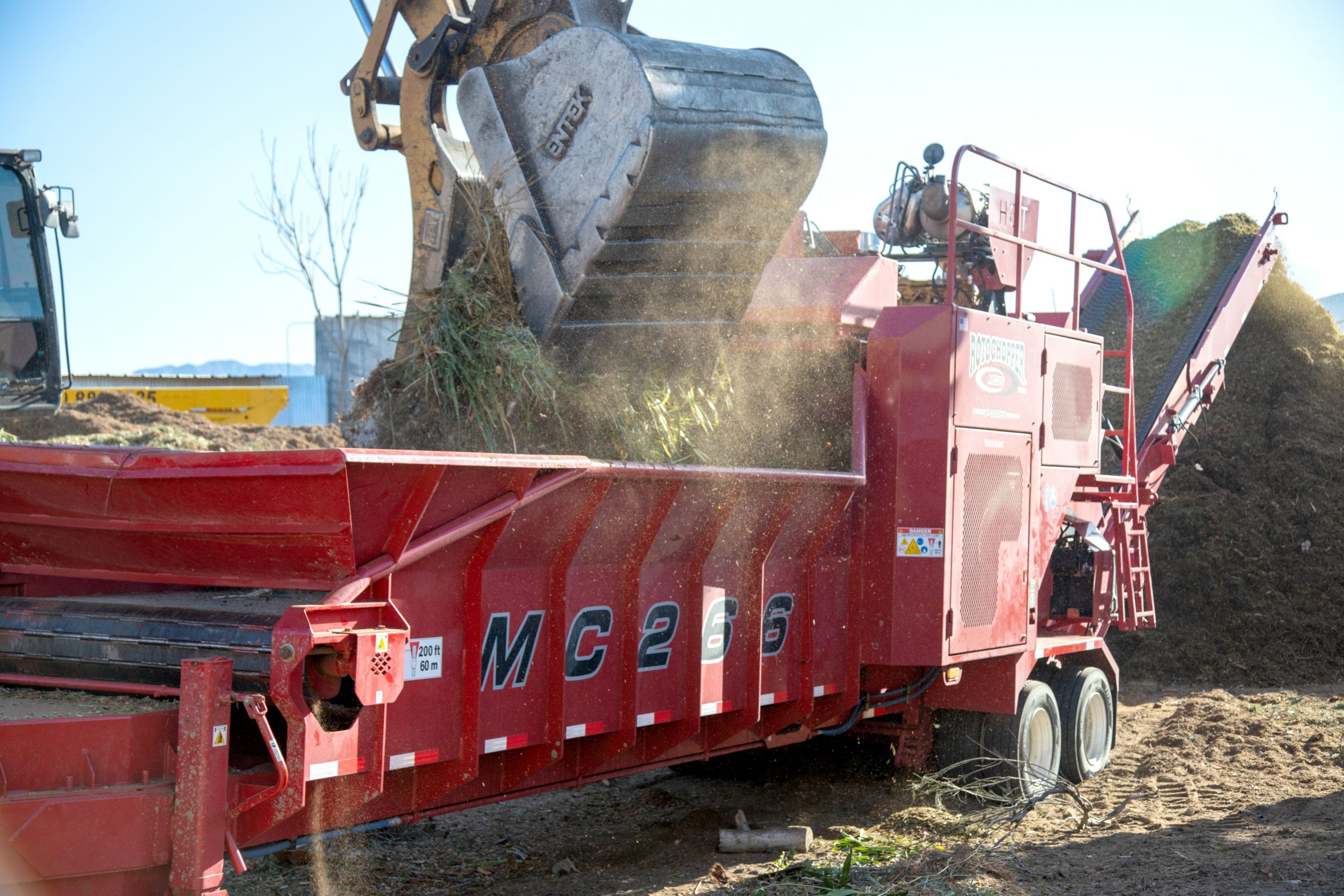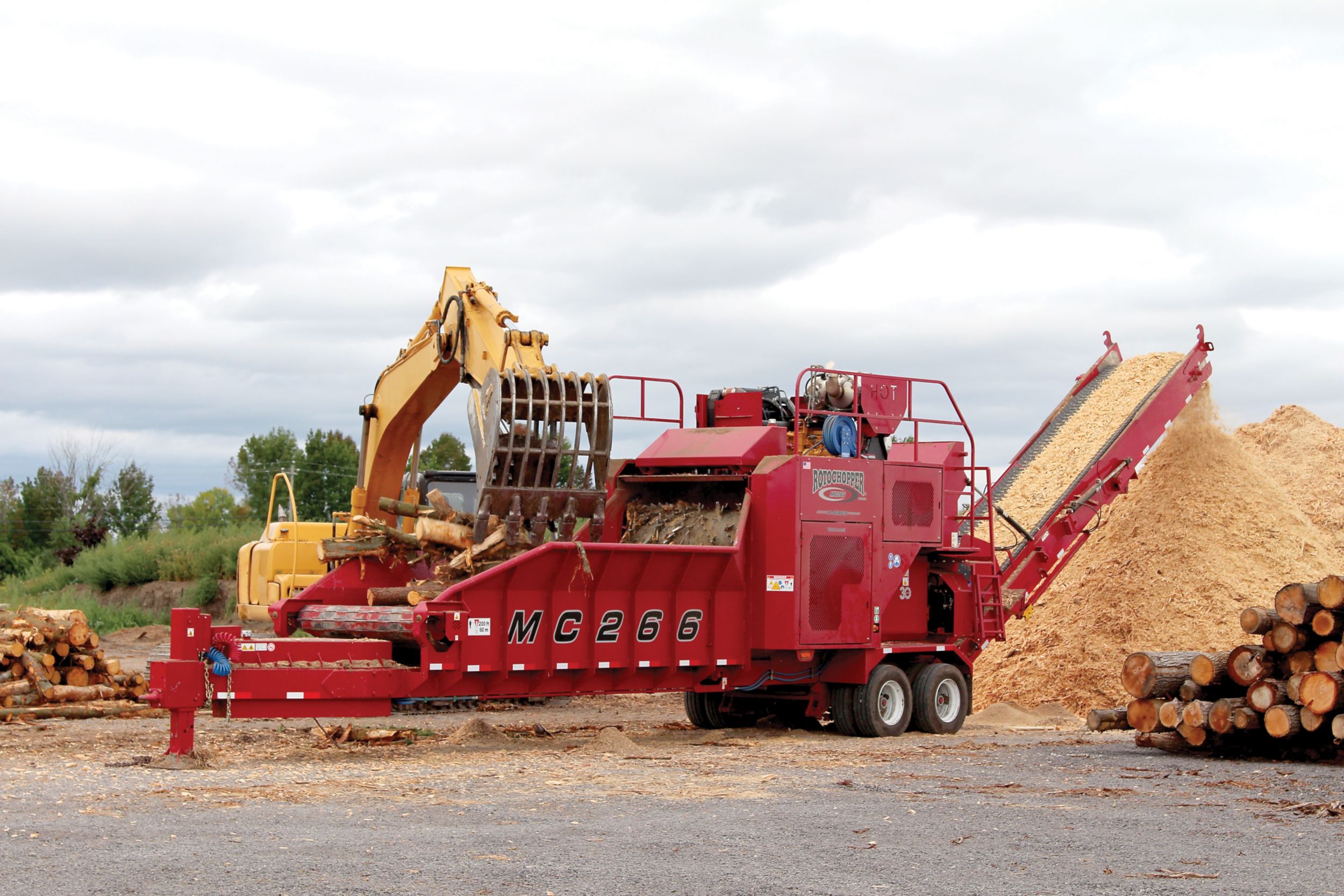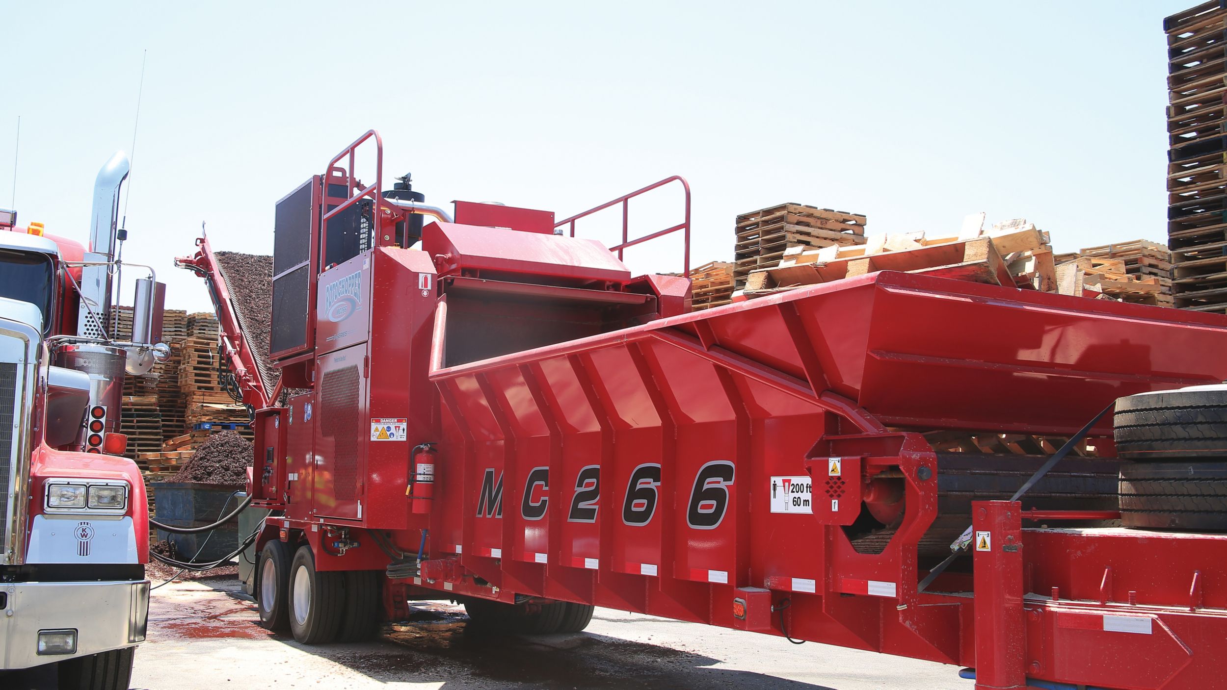 Today, Rotochopper still features a full lineup able to solve more than just waste problems. With a global increase in fuel prices amid continuing labor shortages, finding the right sized machine that is easy for operators to use while keeping up with productivity demands is a common challenge for industry professionals to overcome. Enter the Cat® powered Rotochopper MC-266 horizontal grinder, the company’s highly portable and fully featured mid-size solution driven by a Cat C13B engine.