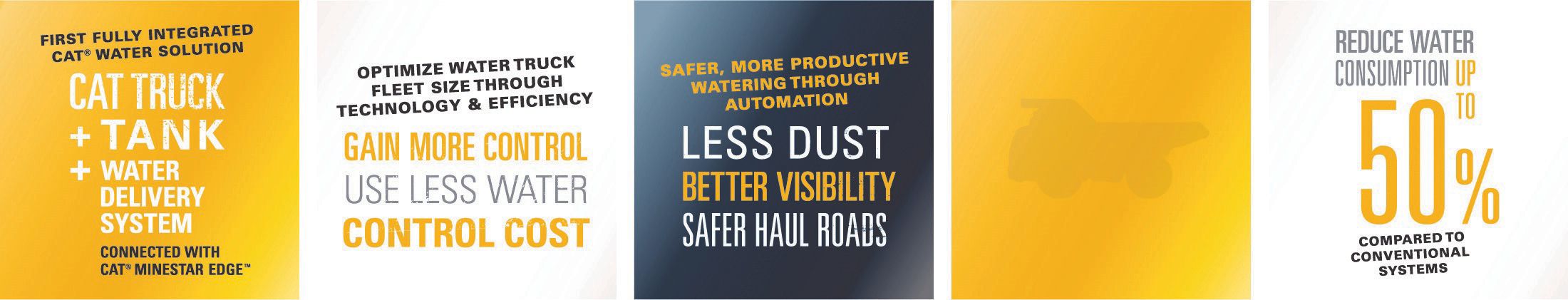 This new, fully integrated water solution can help you reduce haul road dust, solve watering issues, and manage water effectively and sustainably. Cat Water Solutions is a fully integrated truck, tank and water delivery system connected with scalable levels of technology.