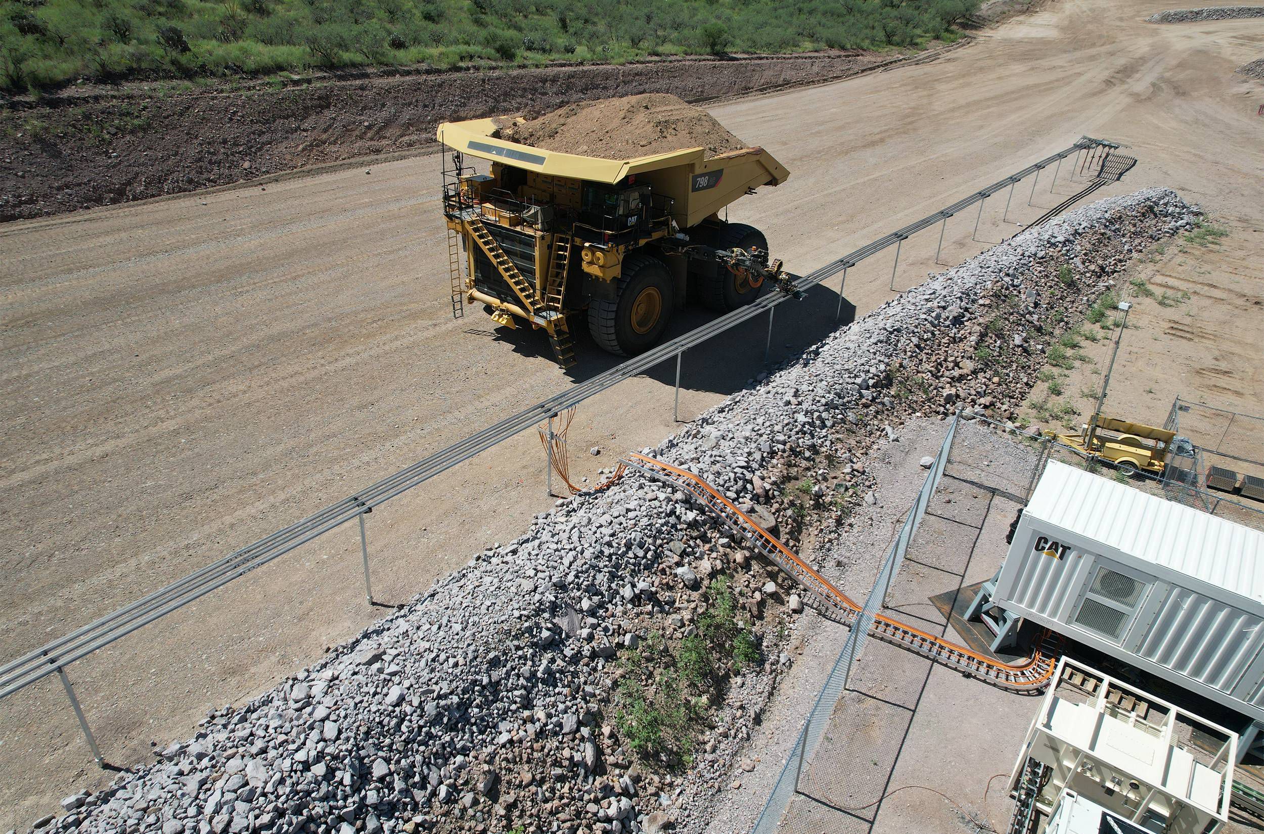 The rail system is a highly deployable, mobile solution that can be customized to customers’ specific site layouts, including high-speed and curved haul roads, enabling higher productivity. The connecting arm can be installed on either side of a truck and on multiple truck models, providing options to fit customers’ specific operations. It can also be used on mature or developing sites, and it can be easily moved or expanded to allow maximum mine site coverage.