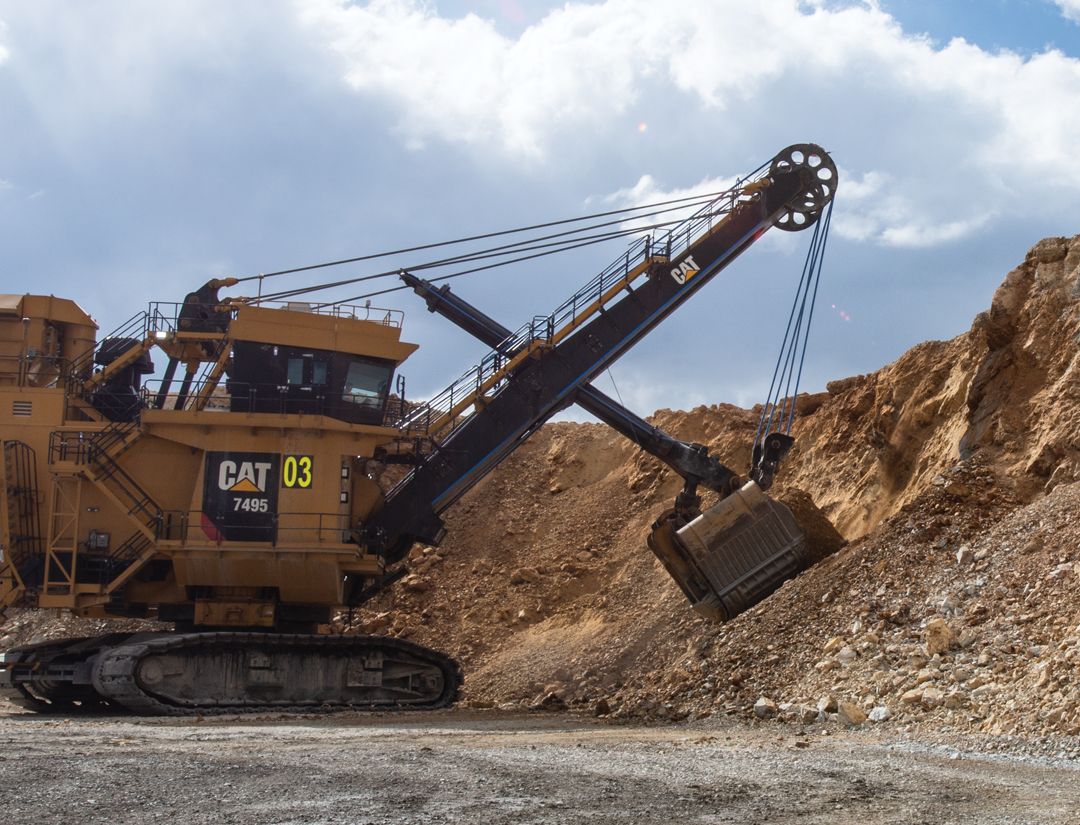Cat 7495 Electric Rope Shovels are designed to load material more safely and efficiently — delivering high productivity and reliability at a low cost per ton. The 7495 combines up to 109-tonne (120-ton) capability with a designed operating life of 120,000 hours or more to help customers maximize production and profit over long mine life.