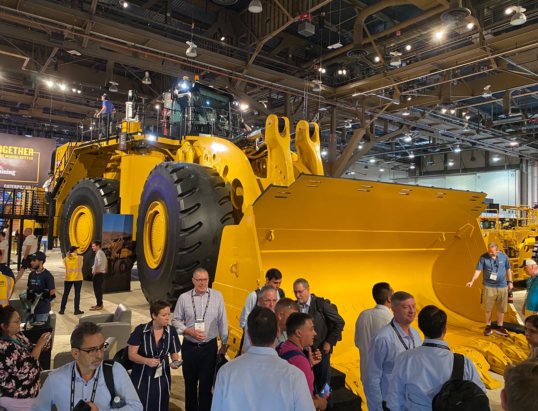 The Cat 995 Wheel Loader on the exhibit was making its MINExpo debut. Built to the same size as the 994K but offering a higher rated payload, the 995 offers greater productivity and performance while using less fuel. It delivers increased production and efficiency up to 33% when loading the Cat 785 Mining Truck, up to 25% when loading the 789, and up to 20% with the 793.