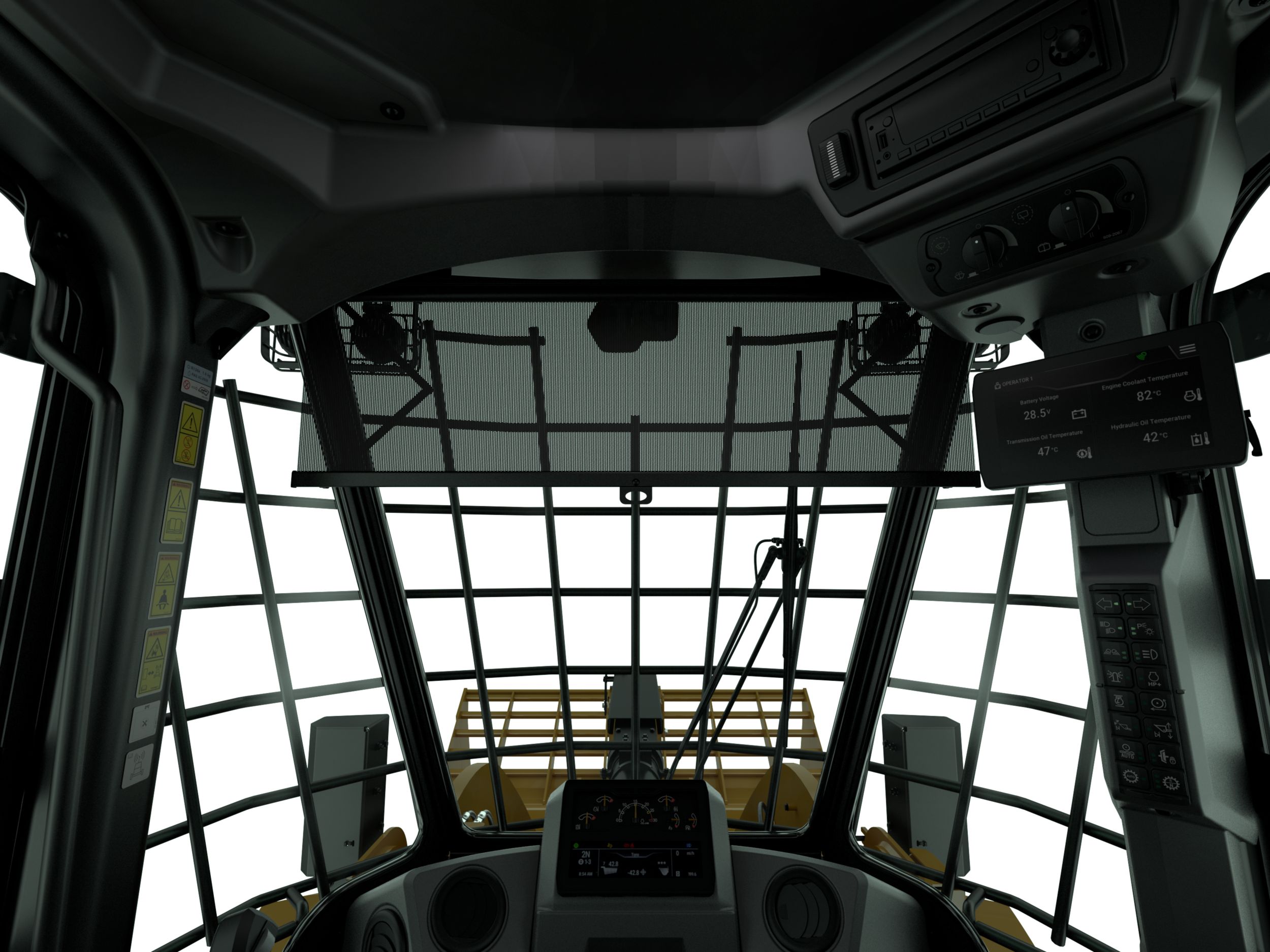 The front window guard is made from steel bars that stop large objects from coming into cabin. It is an added layer of protection for working in applications with debris. Compatible with all CAT MWL attachments. The bars are 20mm (075 inches) in diameter with 200mm (8 inch) spacing.