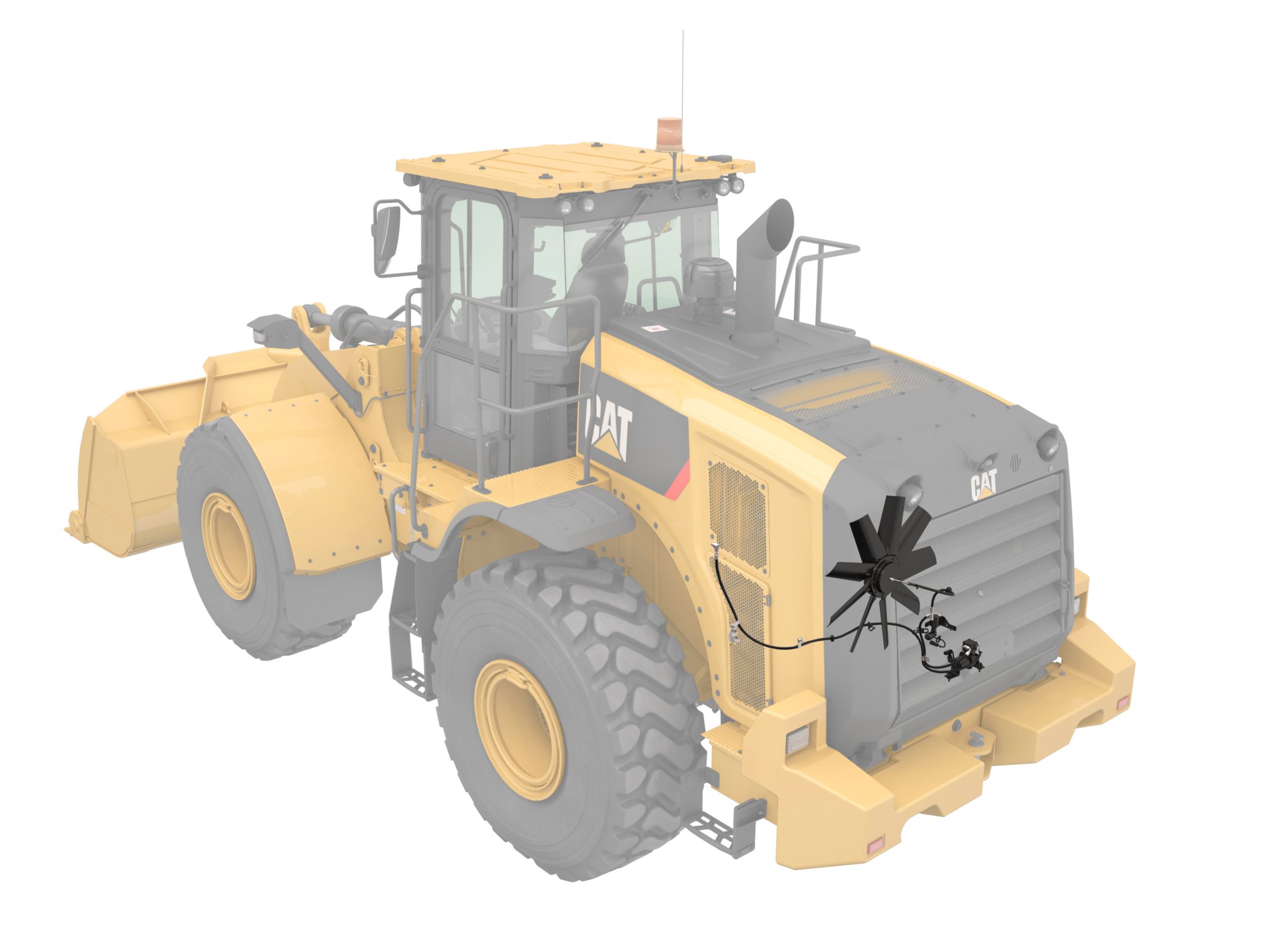 The variable pitch fan helps to keep rear grill and cooling cores clean in high debris applications. It minimizes the potential for overheating and reduces downtime for radiator clean out. The cooling fan blades rotate to reverse the air flow direction. The reverse air flow purges debris off the cooling cores and rear grill.