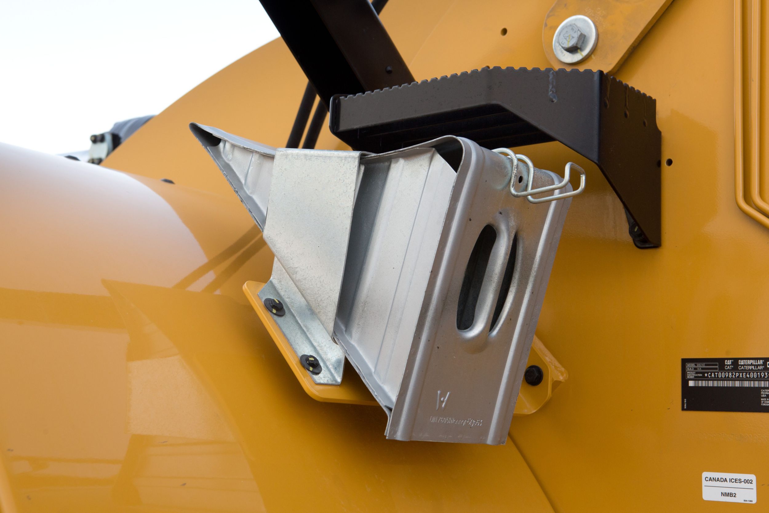 This kit provides wheel chocks used to prevent accidental machine movement. Wheel chocks are mounted to the front frame near front fender making them highly visible and readily accessible.