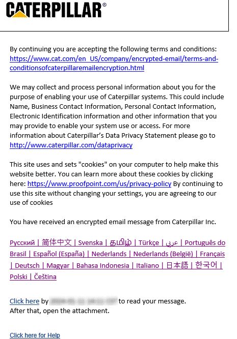 Anda telah menerima pesan email terenkripsi dari Caterpillar Inc.