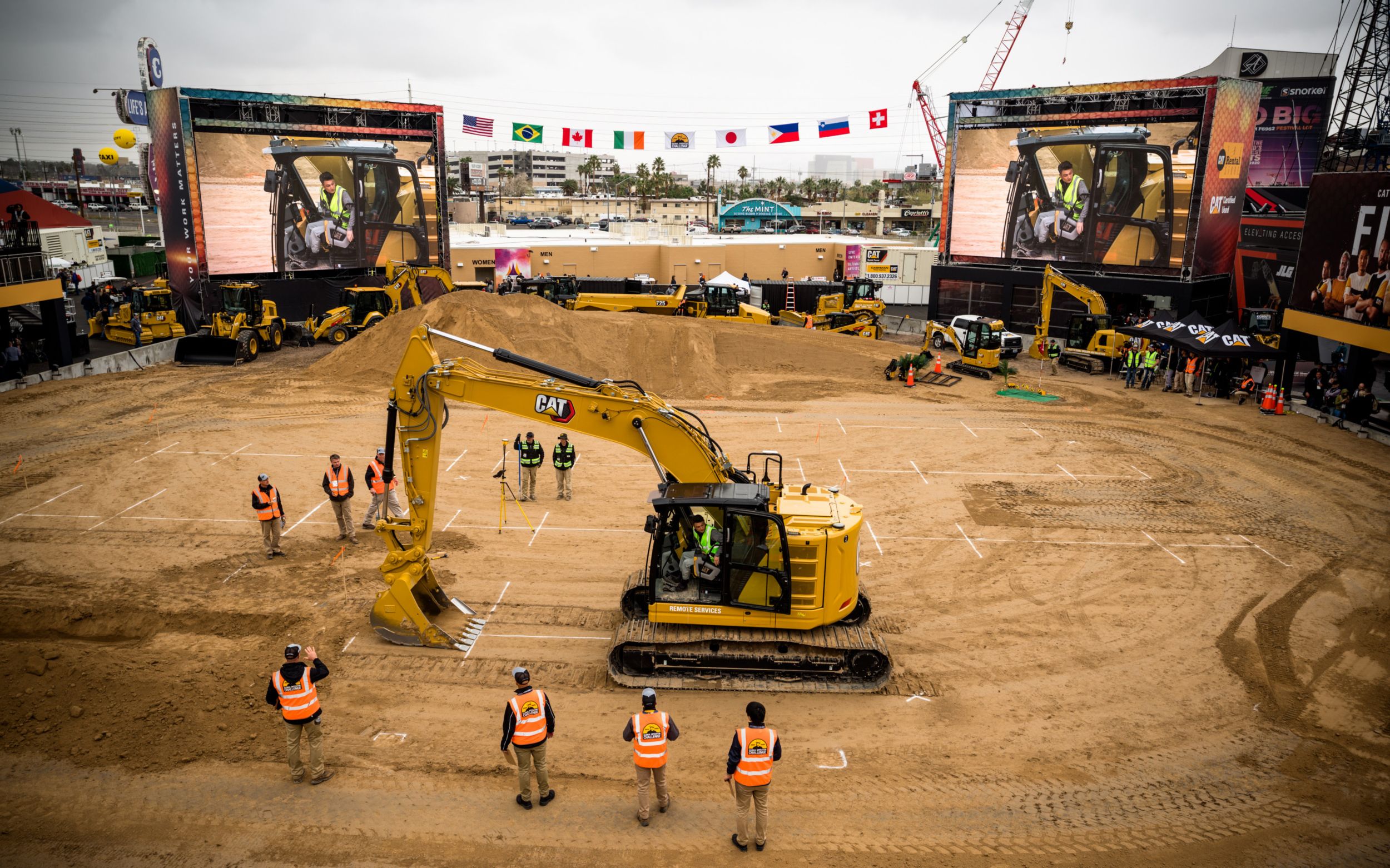The finals of Caterpillar’s historic, year-long Global Operator Challenge took place on Tuesday, March 10, 2020, inside Operator Stadium at the Caterpillar outdoor CONEXPO-CON/AGG Festival Grounds exhibit. Broken into three teams of three – Team Americas, Team Europe and Team Asia – the nine finalists competed individually and as teams as they faced three different skills challenges.