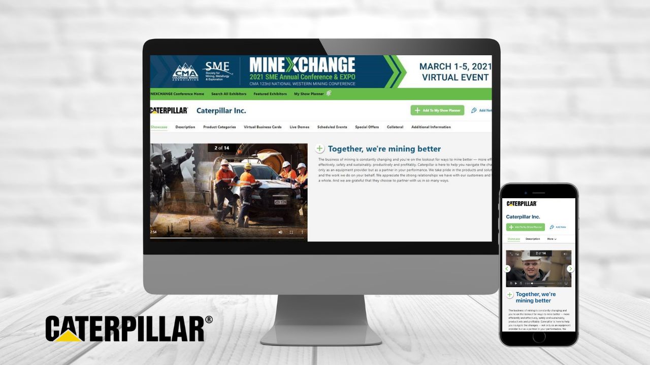 Caterpillar Mining invites all MINEXCHANGE attendees to visit its virtual exhibit. For more information about how Caterpillar Mining and customers are mining better together, visit www.cat.com/mining.