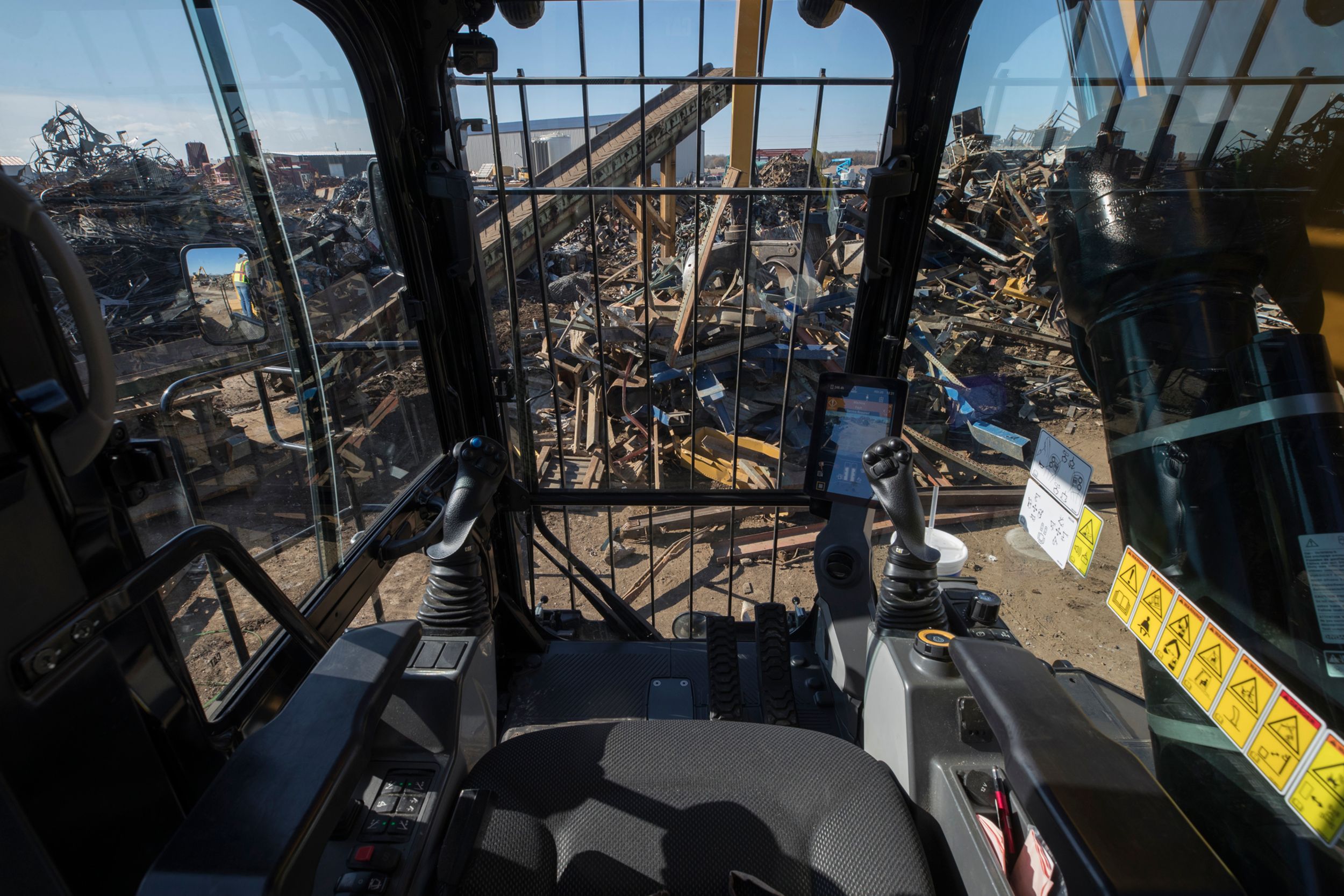 Offering a maximum 15.5-m (50.8-ft) reach, multiple configurations are available for the flexible MH3040 material handler to meet customer needs. Customers can choose from a range of work tool attachments in different sizes to meet the site’s material handling and production needs. Work in low-light conditions with the standard, 1,800 lumen, LED lights on the boom, stick, and cab. The optional 20 kW generator with wiring to stick nose helps to efficiently power magnet attachments for handling fine ferrous material.