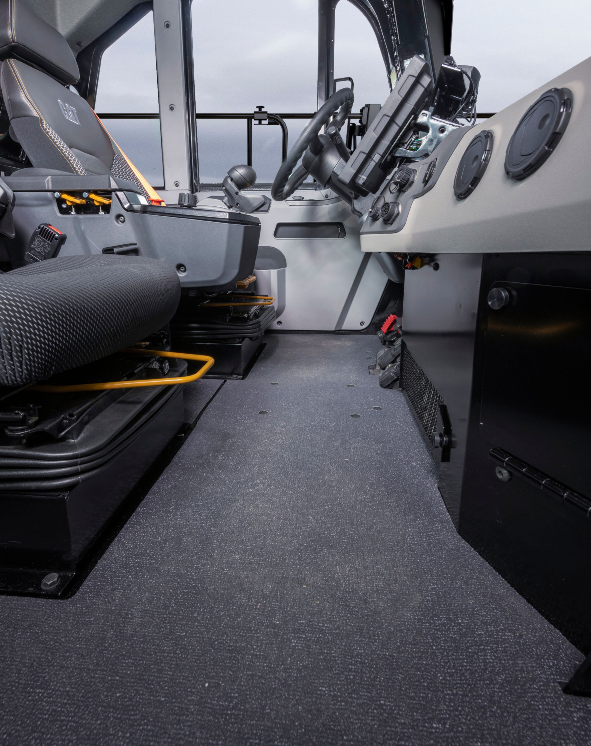 Reducing adjustment time to seconds, the new in-cab powered mirror control delivers convenient left- and right-side rearview mirror adjustments from the operator seat. The deluxe cab is available with high efficiency particulate air (HEPA) filter options to reduce operator exposure to potentially hazardous particles. Delivering more stabilized cabin pressurization over all HVAC fan speeds, the new design reduces respirable dust penetration up to 96% to keep operators healthier and more productive.