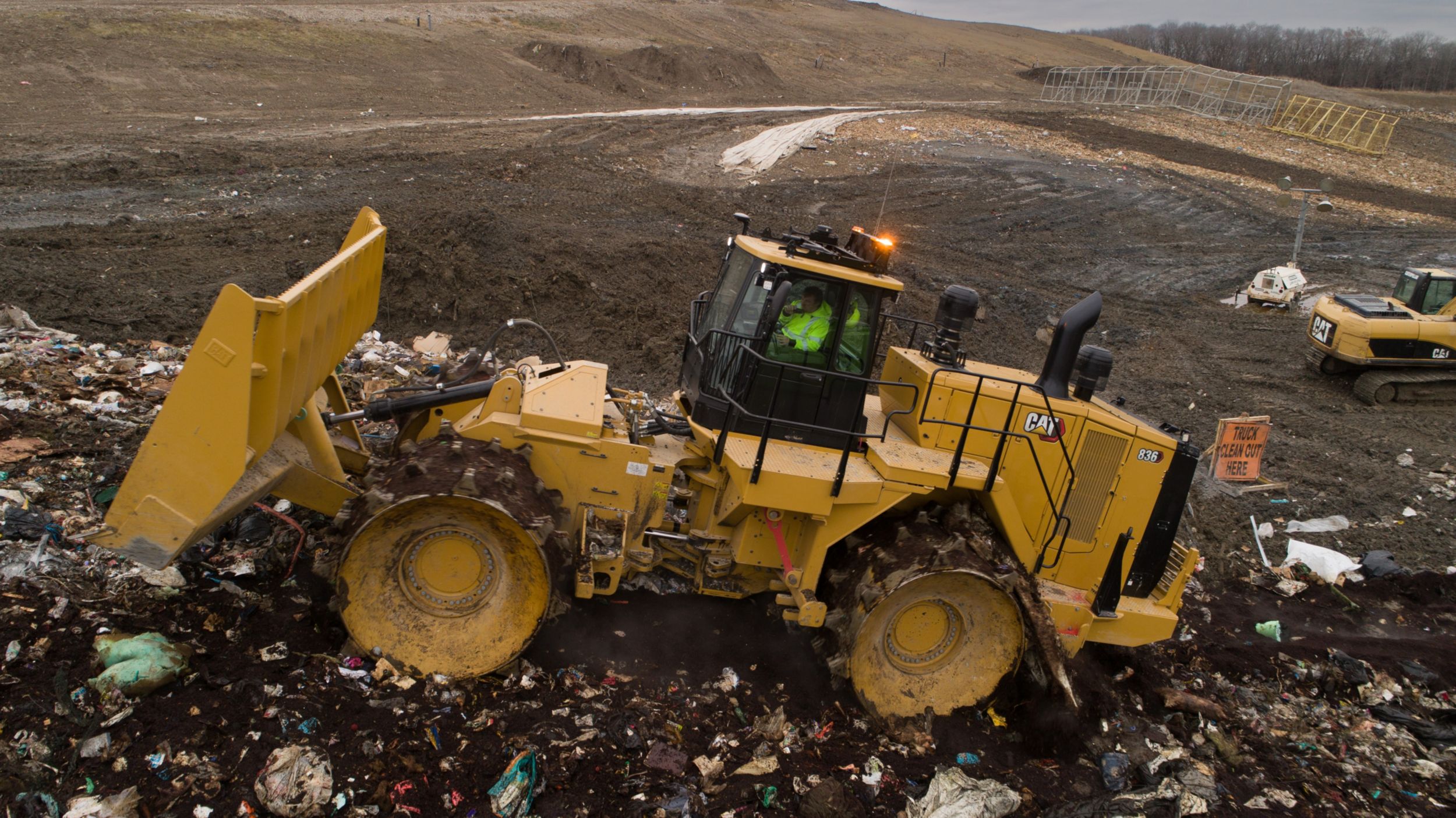 The new Cat® 836 Landfill Compactor leverages Caterpillar’s decades of experience in maximizing machine performance and reliability in the harshest working environments. Engineering upgrades to the axles and transmission of the new landfill compactor help to increase durability of the heavy-duty main structures that support multiple life cycles. New standard technologies increase machine efficiency by allowing the operator to meet compaction targets in fewer passes to save on fuel.