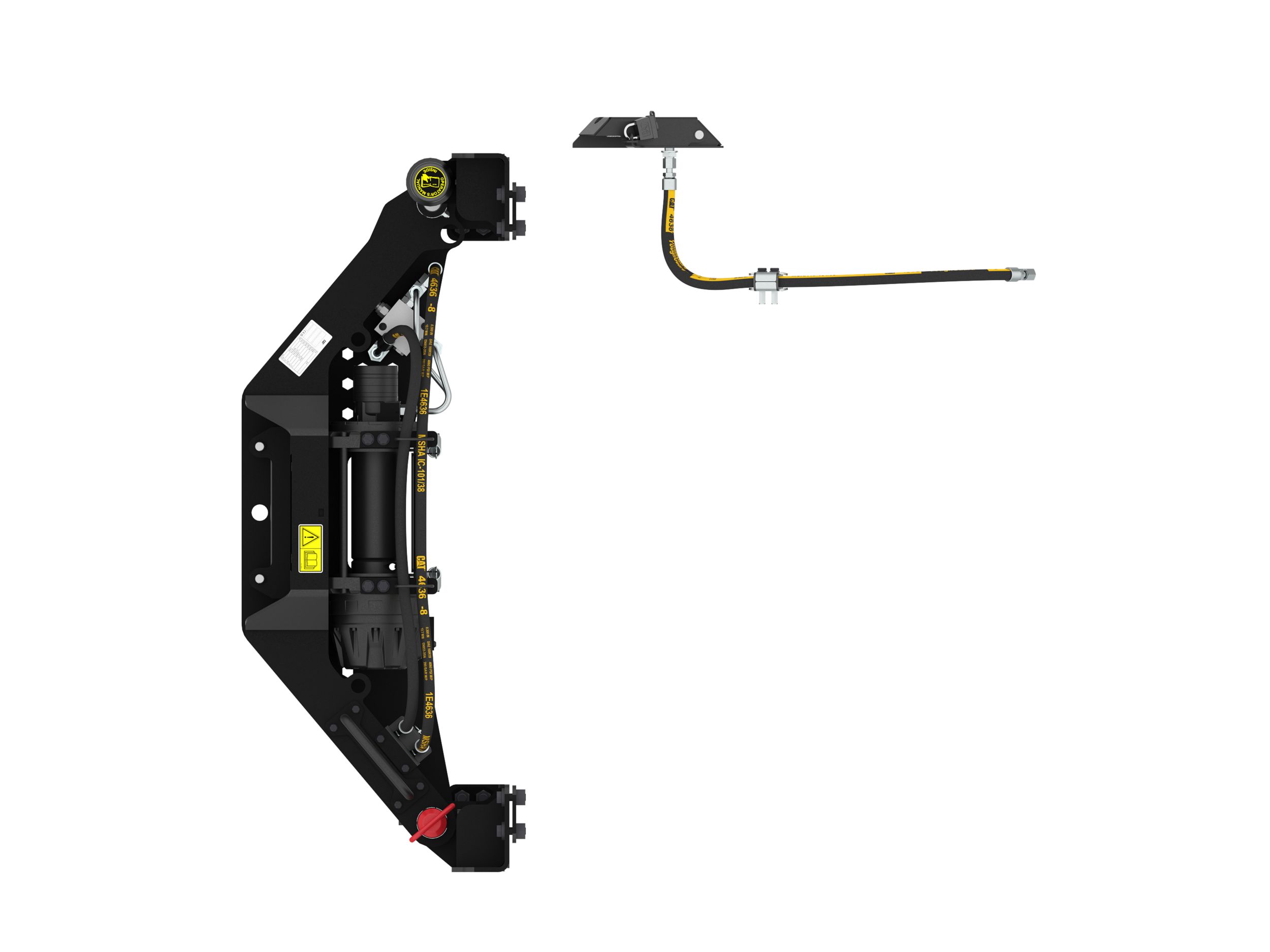 Hoses couple to machine auxiliary hydraulics via quick disconnects, which allows operator to store hoses securely when traveling through dense forest/land management applications.