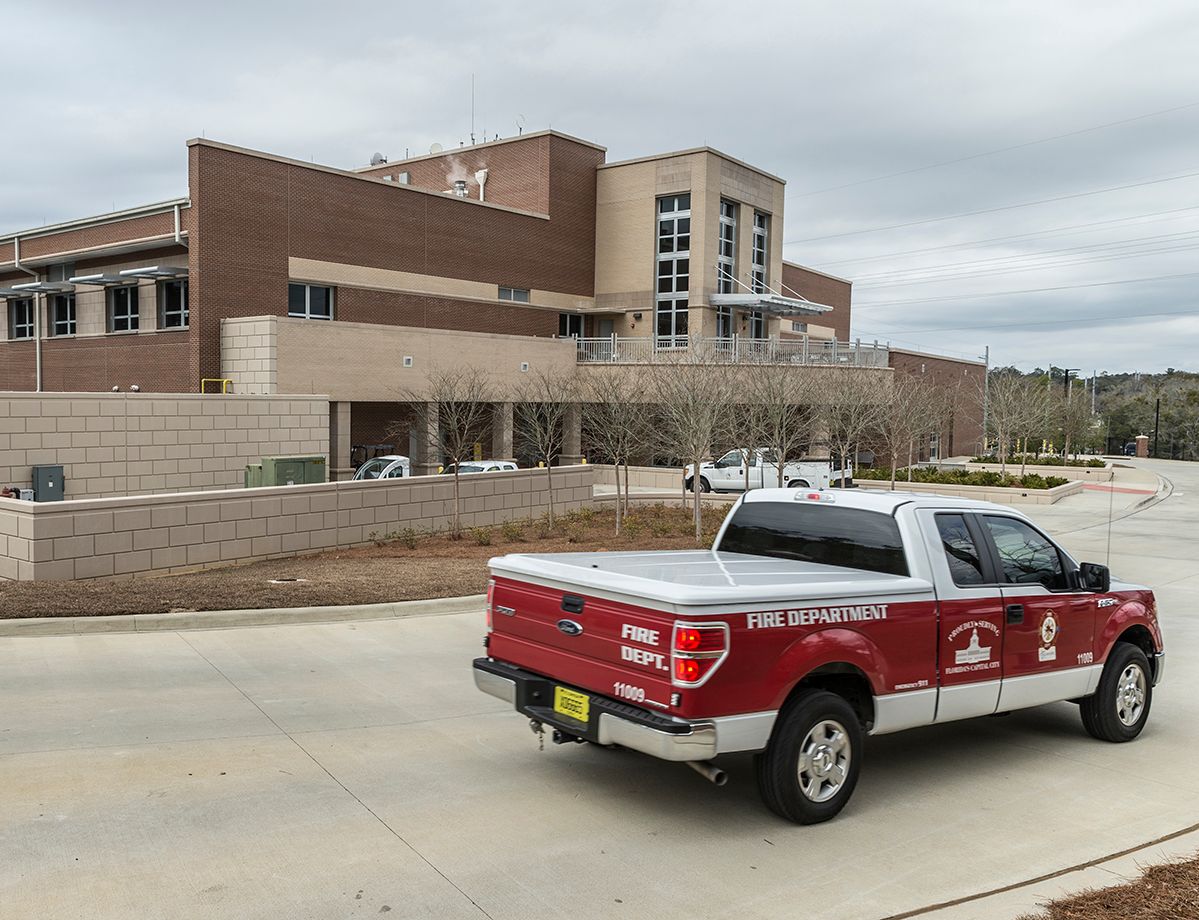 The Leon County Government and the City of Tallahassee joined forces in 2011 to break ground on a new 90,000-square-foot Public Safety Complex to combine the 911 dispatch and emergency response functions from both entities at a single location. Inaugurated in 2013, the $44.8-million complex unified a number of operations including the City of Tallahassee Regional Transportation Management Center, an emergency operations center for Leon County, the Tallahassee Fire Department’s administration offices, Leon County Emergency Medical Services (EMS) and the Consolidated Dispatch Agency. In addition to the main building, the complex also includes an EMS fleet operations center and space for a future city fire station. The integrated complex provides a more coordinated emergency response effort from 150 employees, who receive nearly 500 emergency calls each day.