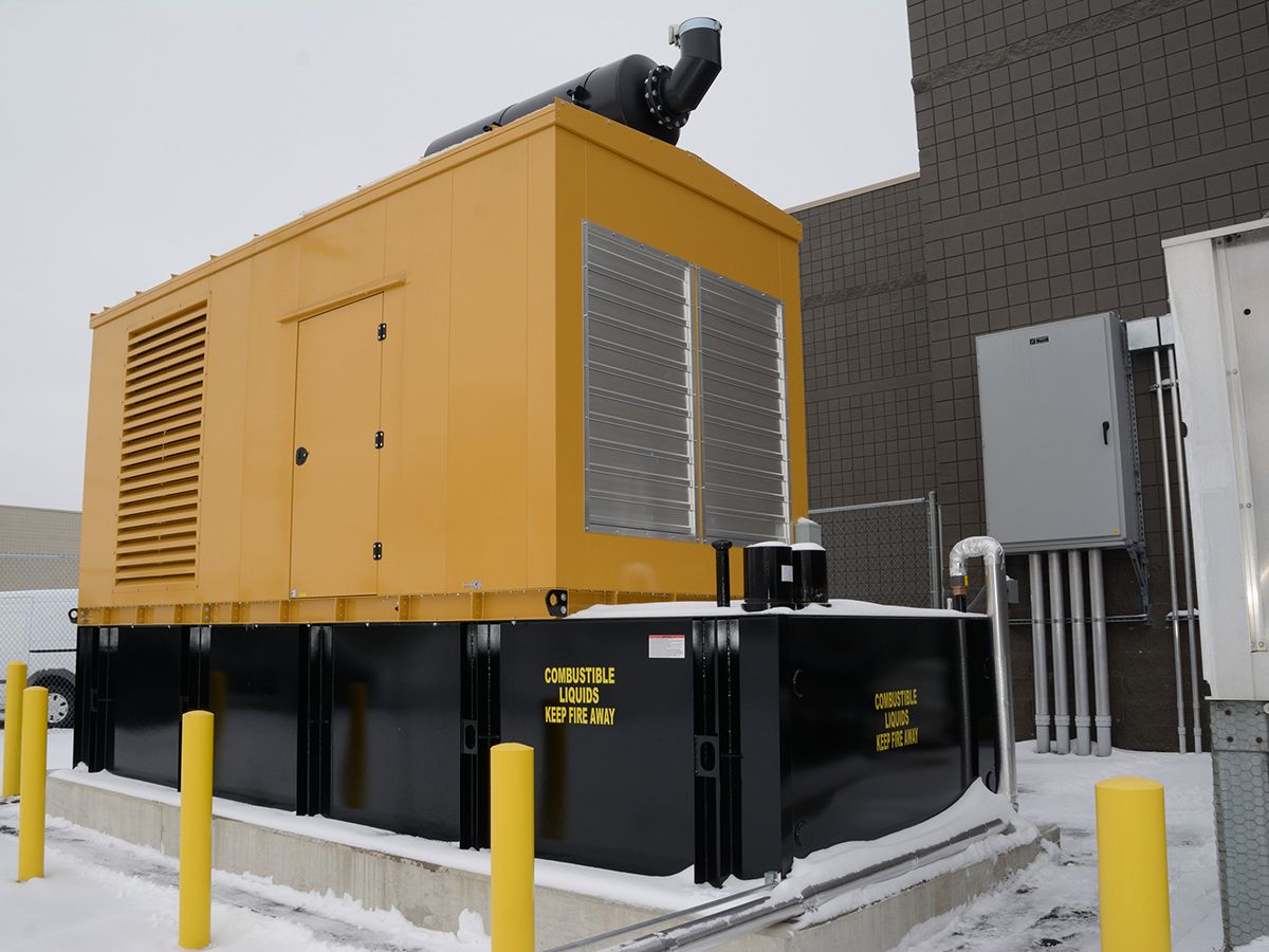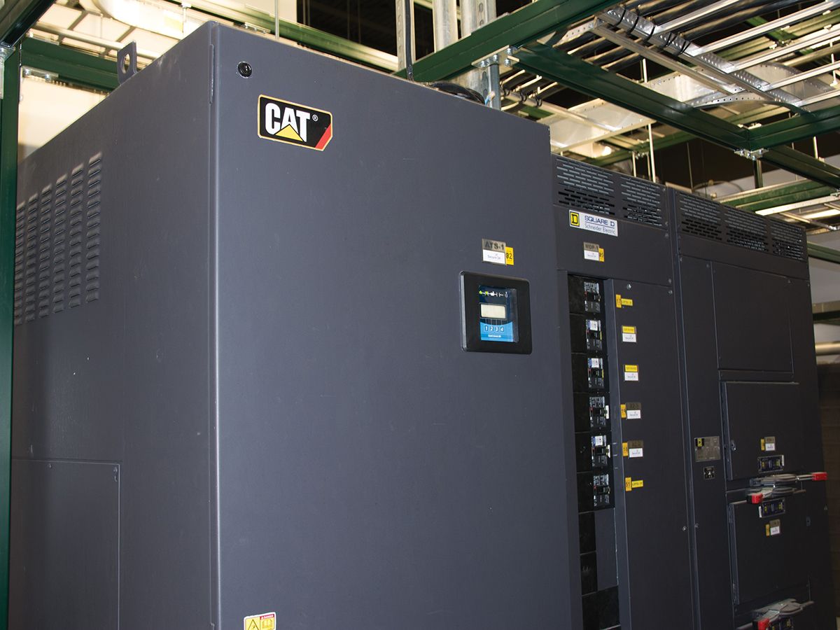 Currently, the data center power infrastructure utilizes a symmetrical approach, whereby two Cat C32 diesel generator sets back up both sides of the data center’s electrical system in case of a power failure. A third Cat C32 was commissioned in 2015, providing full N+1 coverage to the primary generator sets yielding a sustainable 2N+1 generator solution.